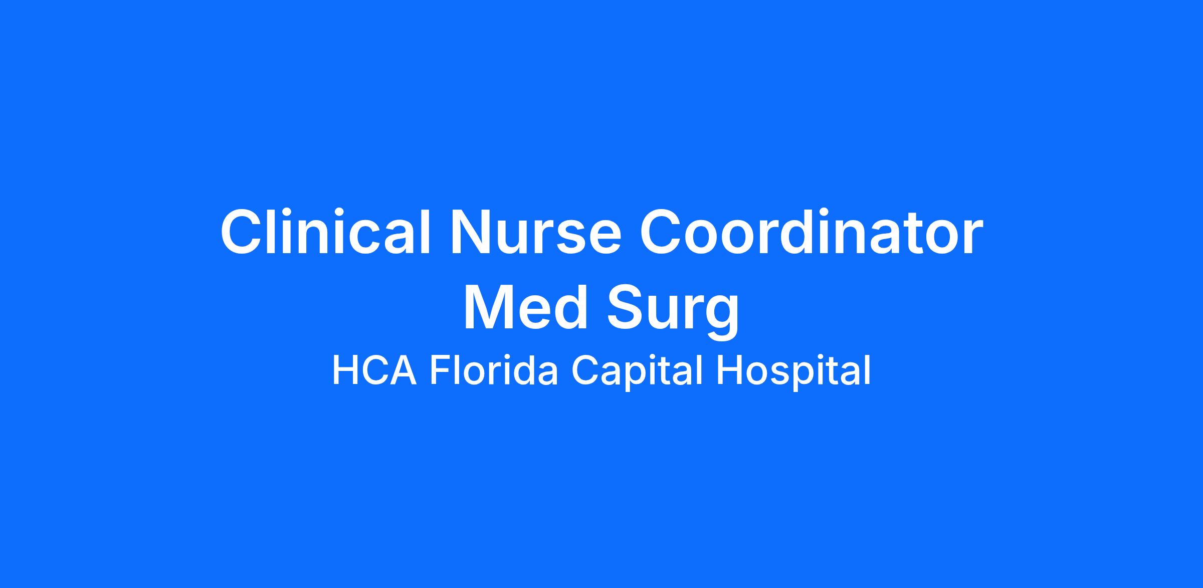 Do you have the career opportunities as a Clinical Nurse Coordinator Med Surg you want in your current role? We invest in what matters most to nurses like you – at home, at work, and at every stage in your career. We have an exciting opportunity for you to join HCA Florida Capital Hospital which is a part of the nation’s leading provider of healthcare services, HCA Healthcare.