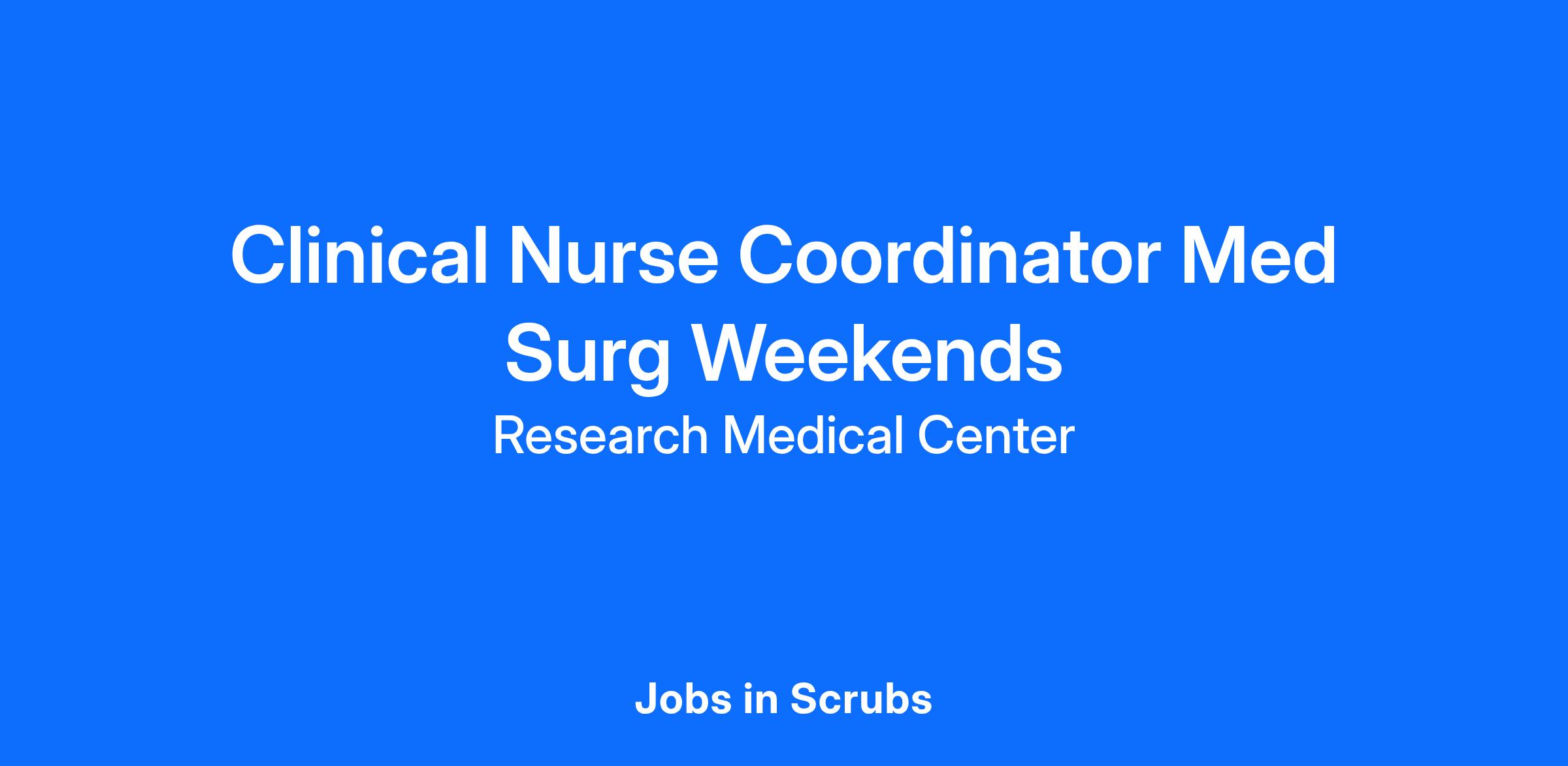 Are you passionate about the patient experience? At HCA Healthcare, we are committed to caring for patients with purpose and integrity. We care like family! Jump-start your career as a Registered Nurse Clinical Nurse Coordinator in Med Surg today with Research Medical Center.