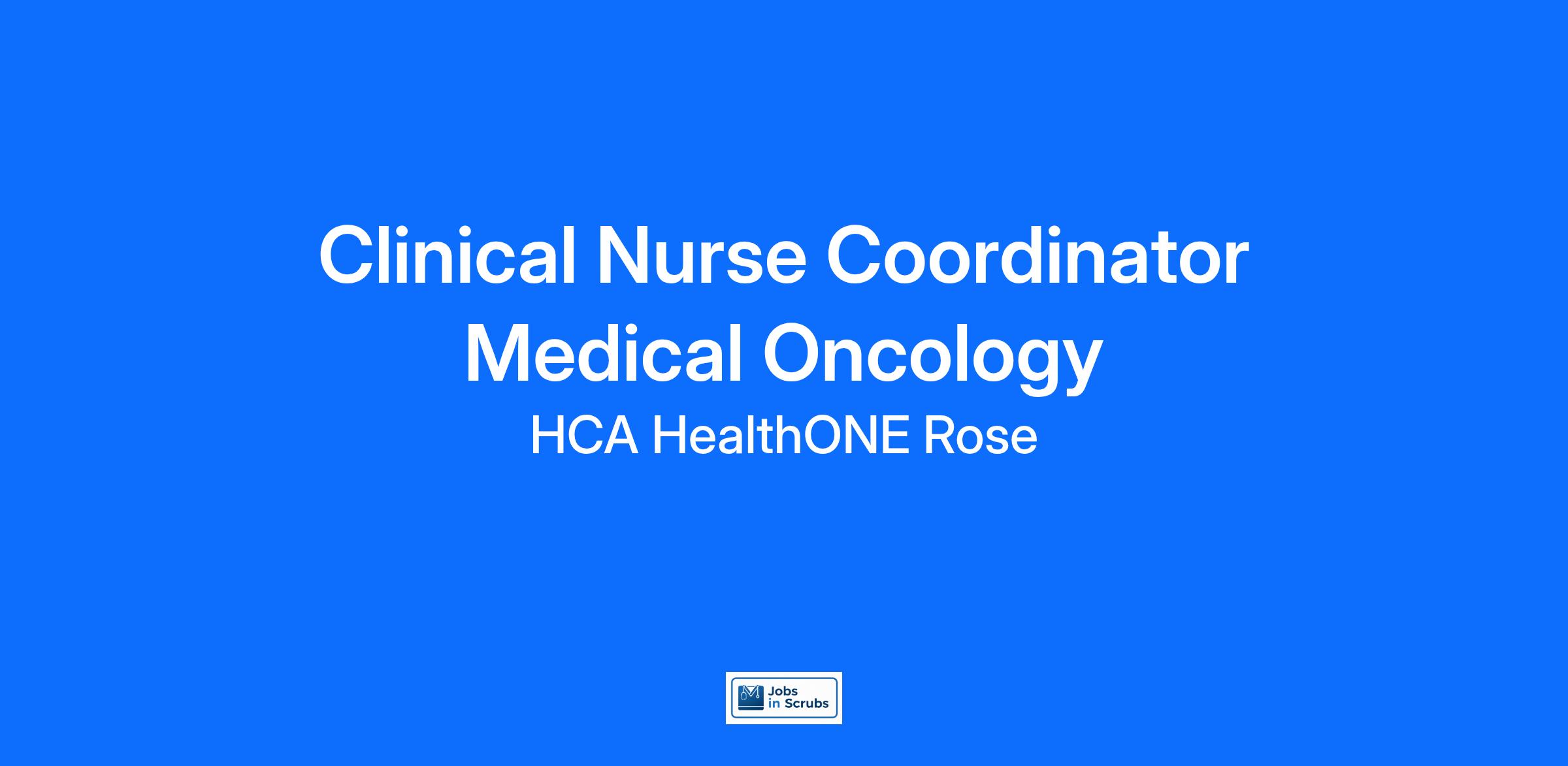 Are you looking for a place to deliver excellent care patients deserve? At HCA HealthONE Rose we support our colleagues in their positions. Join our Team as a(an) Clinical Nurse Coordinator Medical Oncology and access programs to assist with every stage of your career.