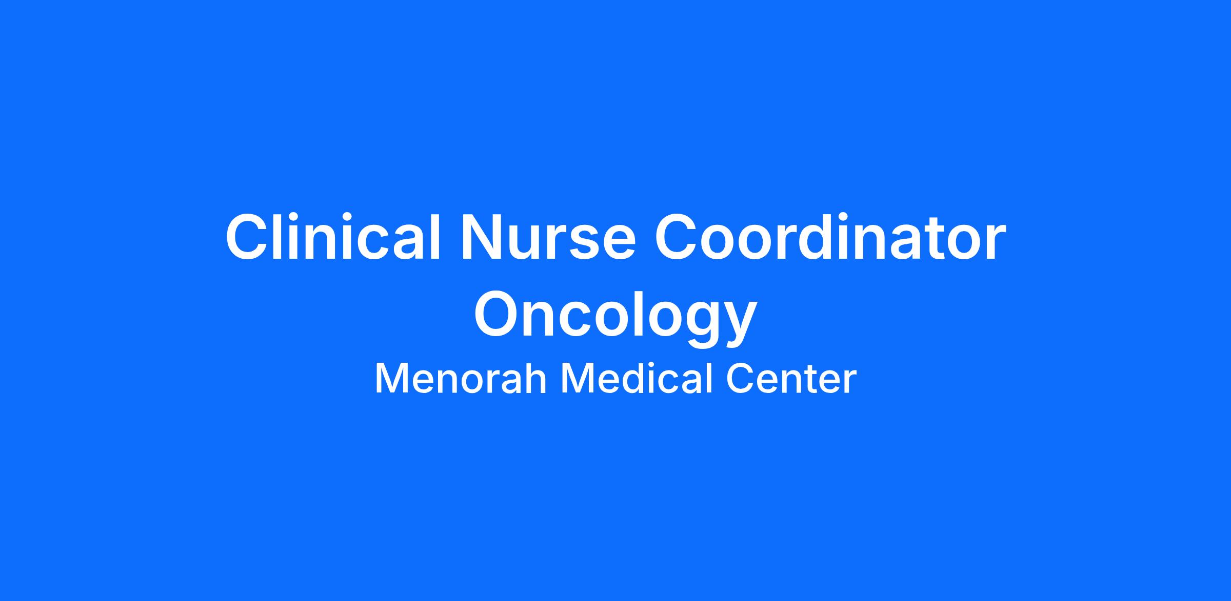 Do you want to join an organization that invests in you as a(an) Clinical Nurse Coordinator Oncology? At Menorah Medical Center, you come first. HCA Healthcare has committed up to $300 million in programs to support our incredible team members over the course of three years.