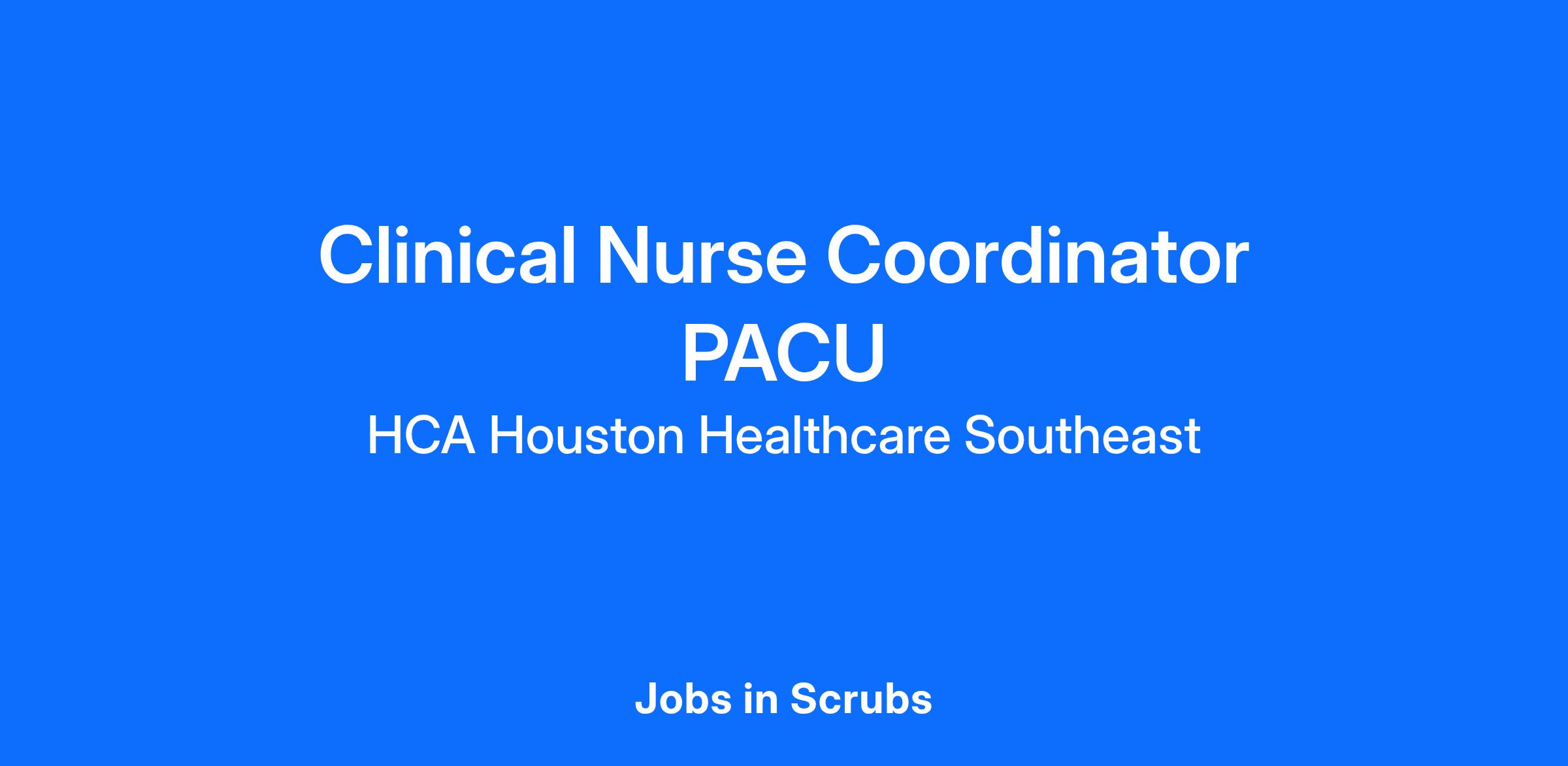 HCA Houston Healthcare Southeast is committed to investing in the latest technology enabling nurses to work more efficiently. Are you passionate about delivering patient-centered care? Submit your application for Clinical Nurse Coordinator PACU position and spend more time at the bedside with the patient.