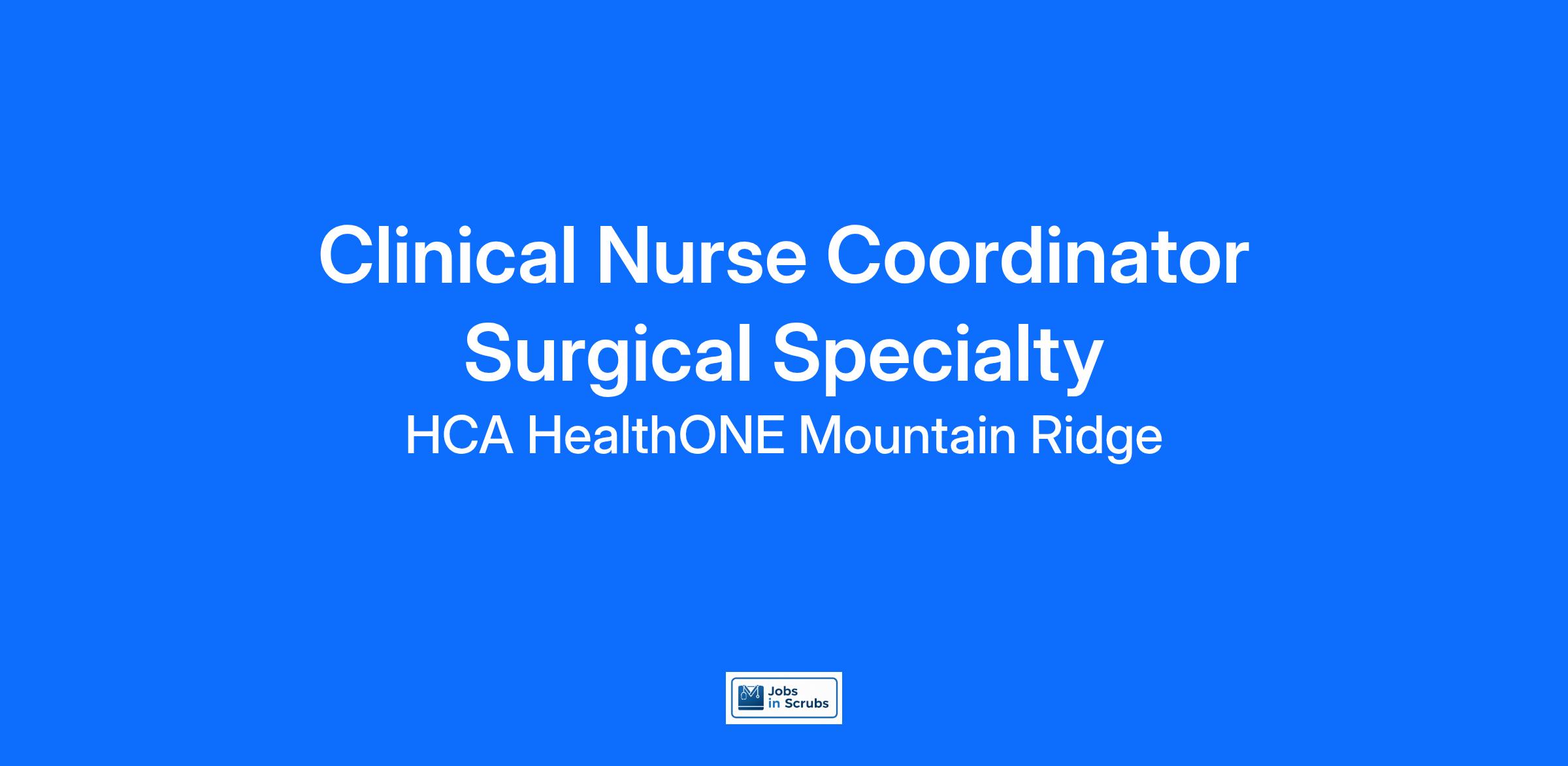 Are you looking for a place to deliver excellent care patients deserve? At HCA HealthONE Mountain Ridge we support our colleagues in their positions. Join our Team as a(an) Clinical Nurse Coordinator Surgical Specialty and access programs to assist with every stage of your career.