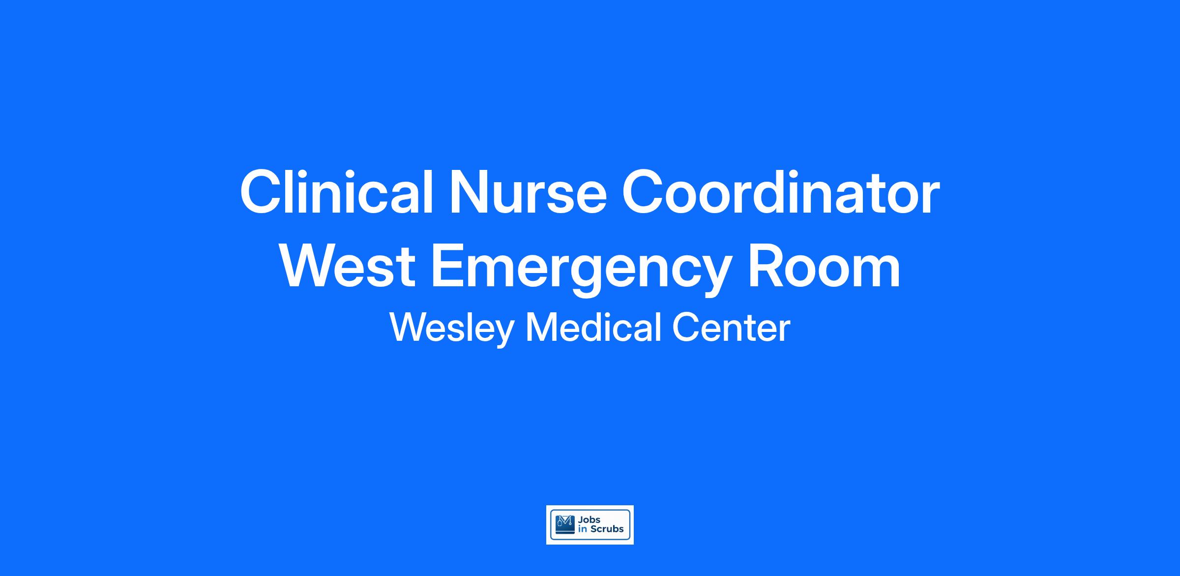 Do you currently have an opportunity to make a real impact with your work? With over 2,000 sites of care and serving over 31.2 million patient interactions every year, nurses at Wesley Medical Center have the opportunity to make a real impact. As a(an) Clinical Nurse Coordinator West ED you can be a part of change.