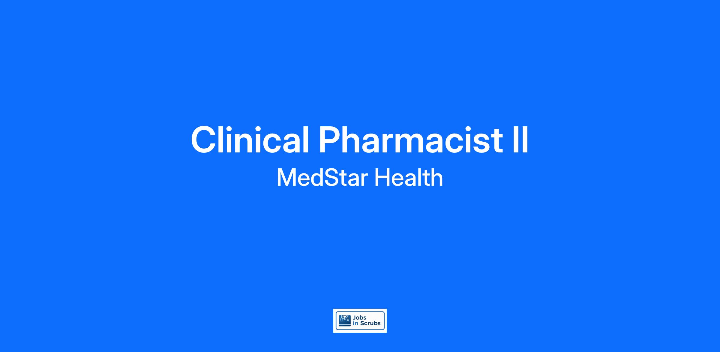 We have an opportunity available for an experienced Clinical Pharmacist II to join our team at MedStar Washington Hospital Center in Washington, DC.