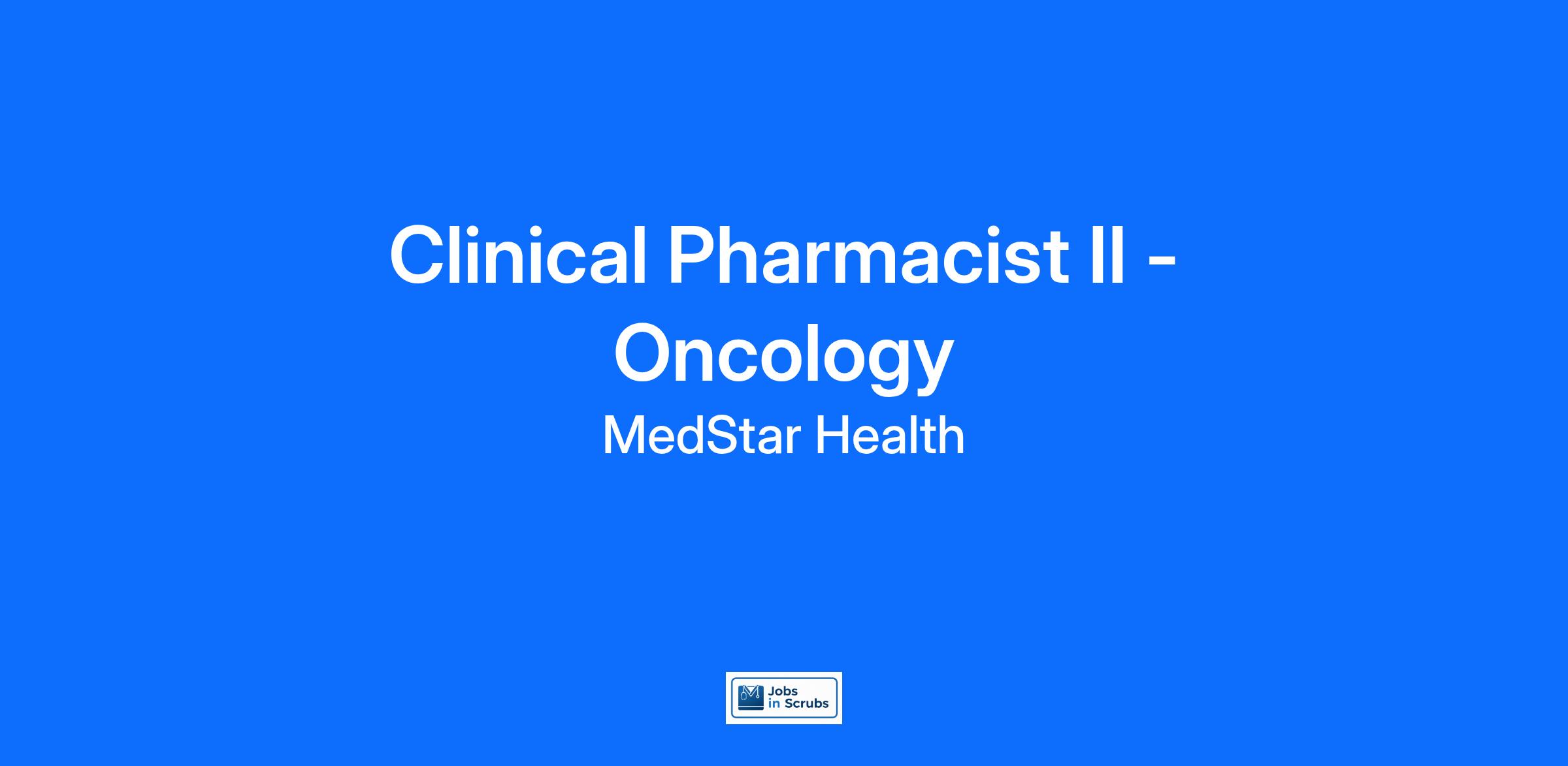 We are actively recruiting for an experienced Oncology Pharmacist to join our team at MedStar Georgetown University Hospital as a full-time Clinical Pharmacist II.  This position is primarily day/evening shift with rotating weekends.