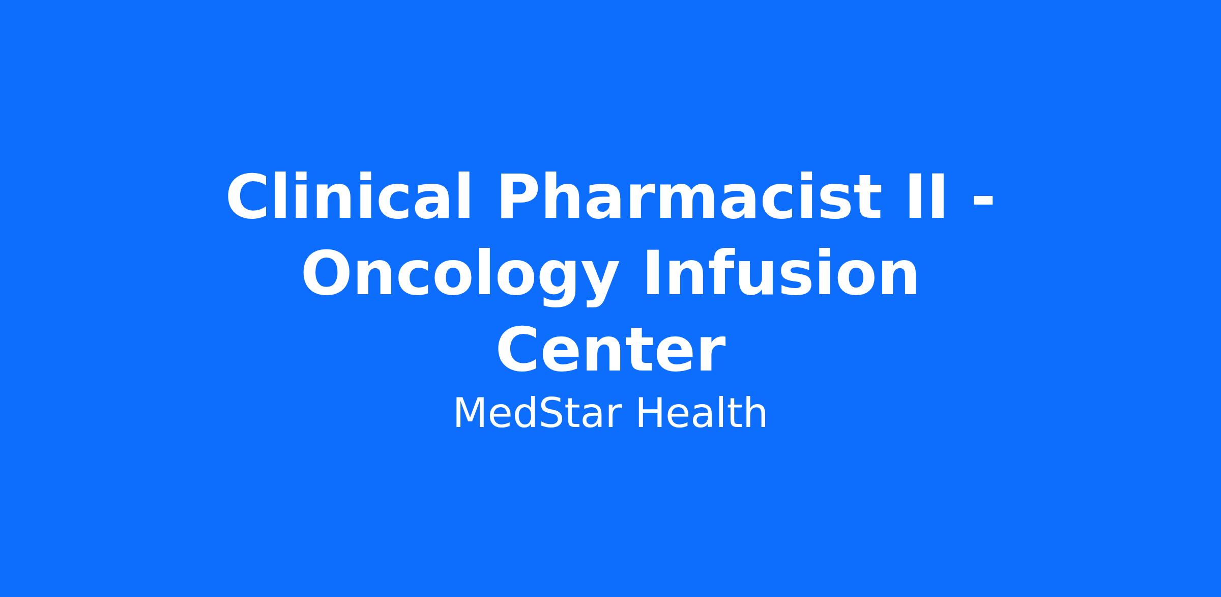 Clinical Pharmacist II - Oncology Infusion Center