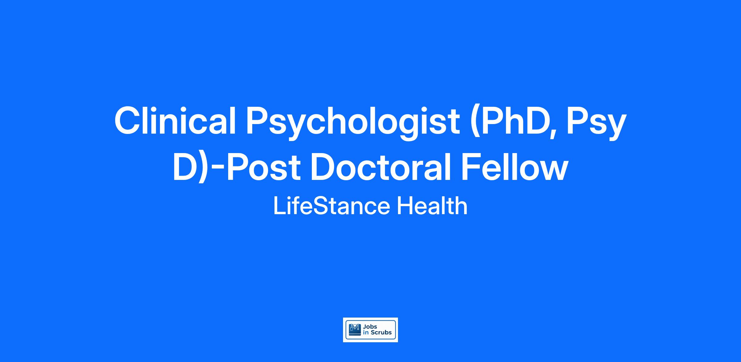 Clinical Psychologist (PhD, Psy D)-Post Doctoral Fellow