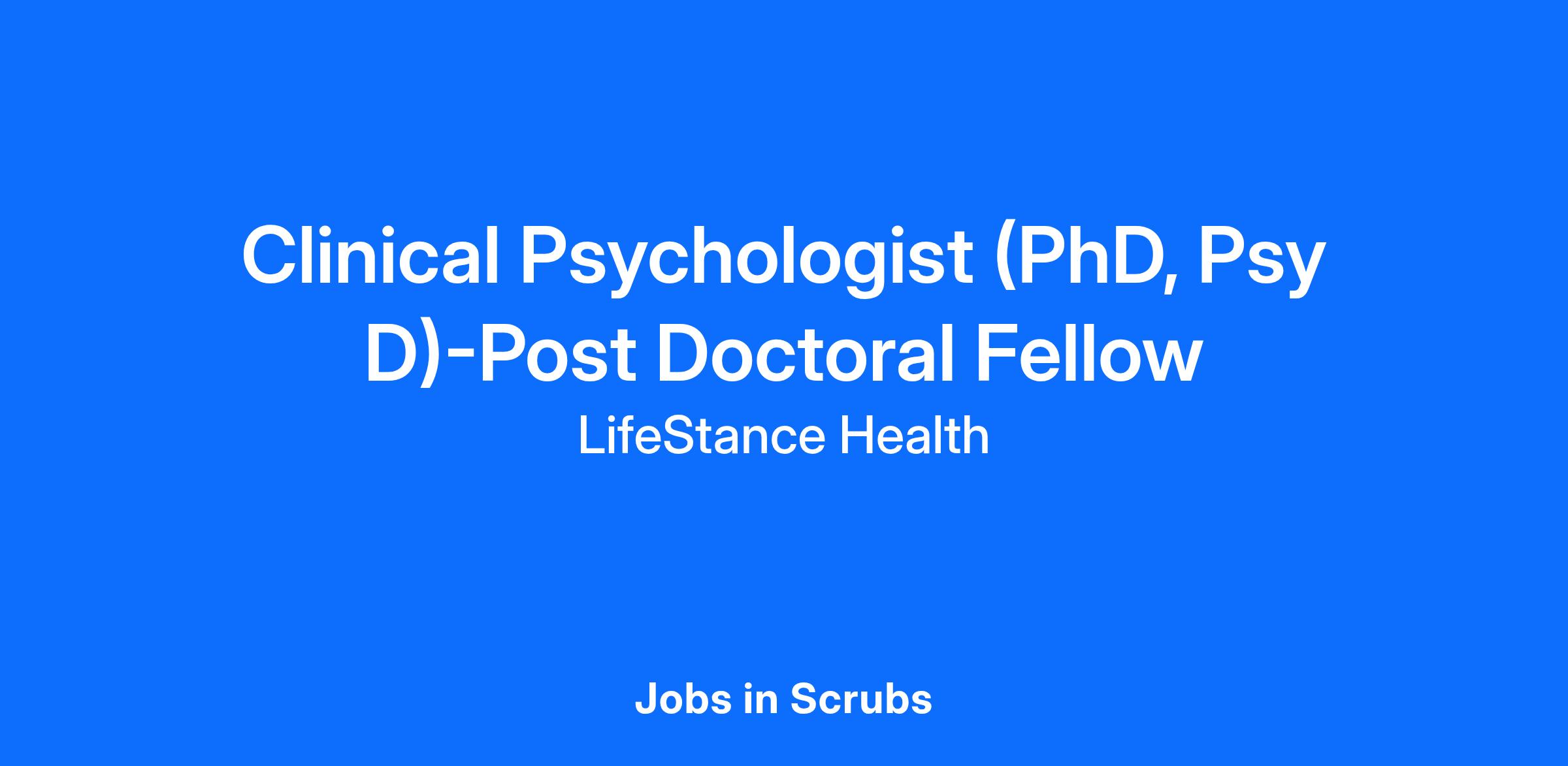 Clinical Psychologist (PhD, Psy D)-Post Doctoral Fellow