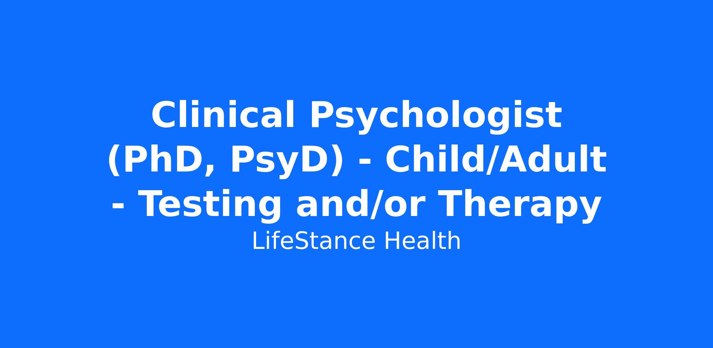Clinical Psychologist (PhD, PsyD) - Child/Adult - Testing and/or Therapy