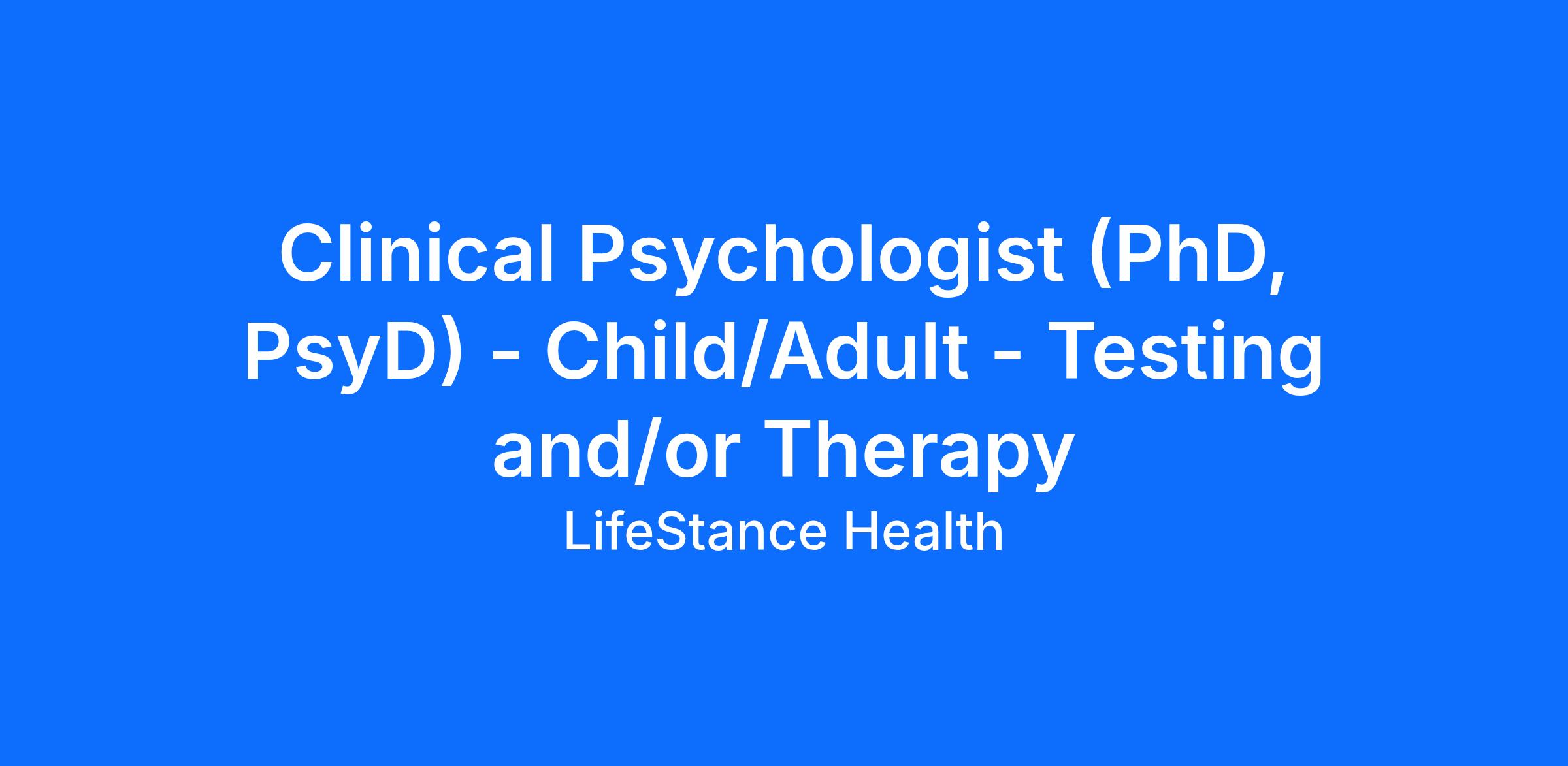 Clinical Psychologist (PhD, PsyD) - Child/Adult - Testing and/or Therapy