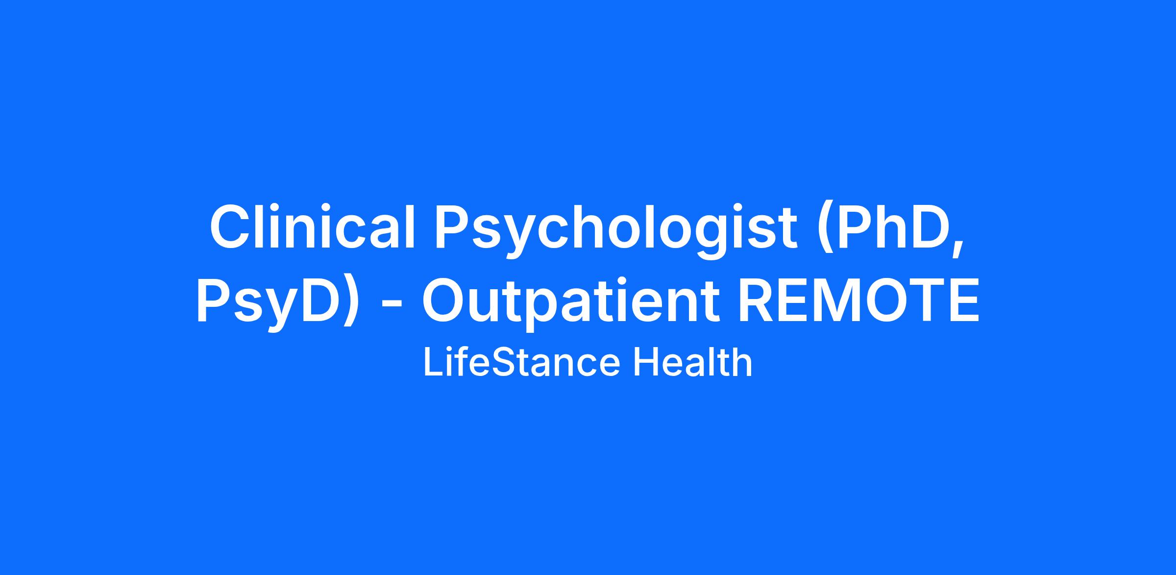 Clinical Psychologist (PhD, PsyD) - Outpatient REMOTE