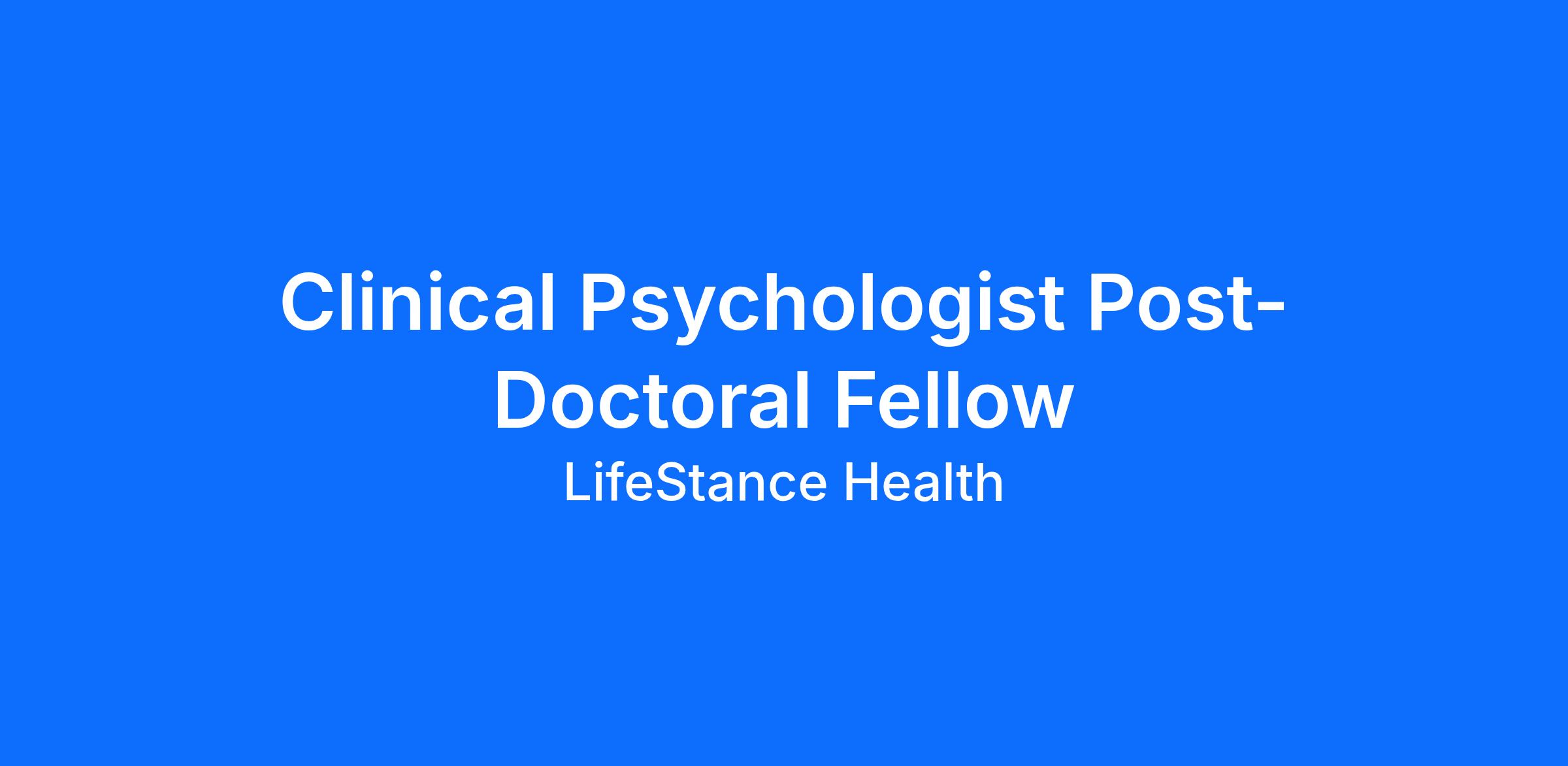 • LifeStance Health candidates for Post-Doctoral Fellowship positions. We accept post-docs on a rolling admission. LifeStance Health offers a wide range of psychotherapy services (e.g. individual therapy, group therapy, couples therapy, and family therapy) in addition to psychological/neuropsychological/pre-surgical evaluations and psychiatry services. Our post-doctoral fellows would provide a combination of psychological/neuropsychological testing and counseling.