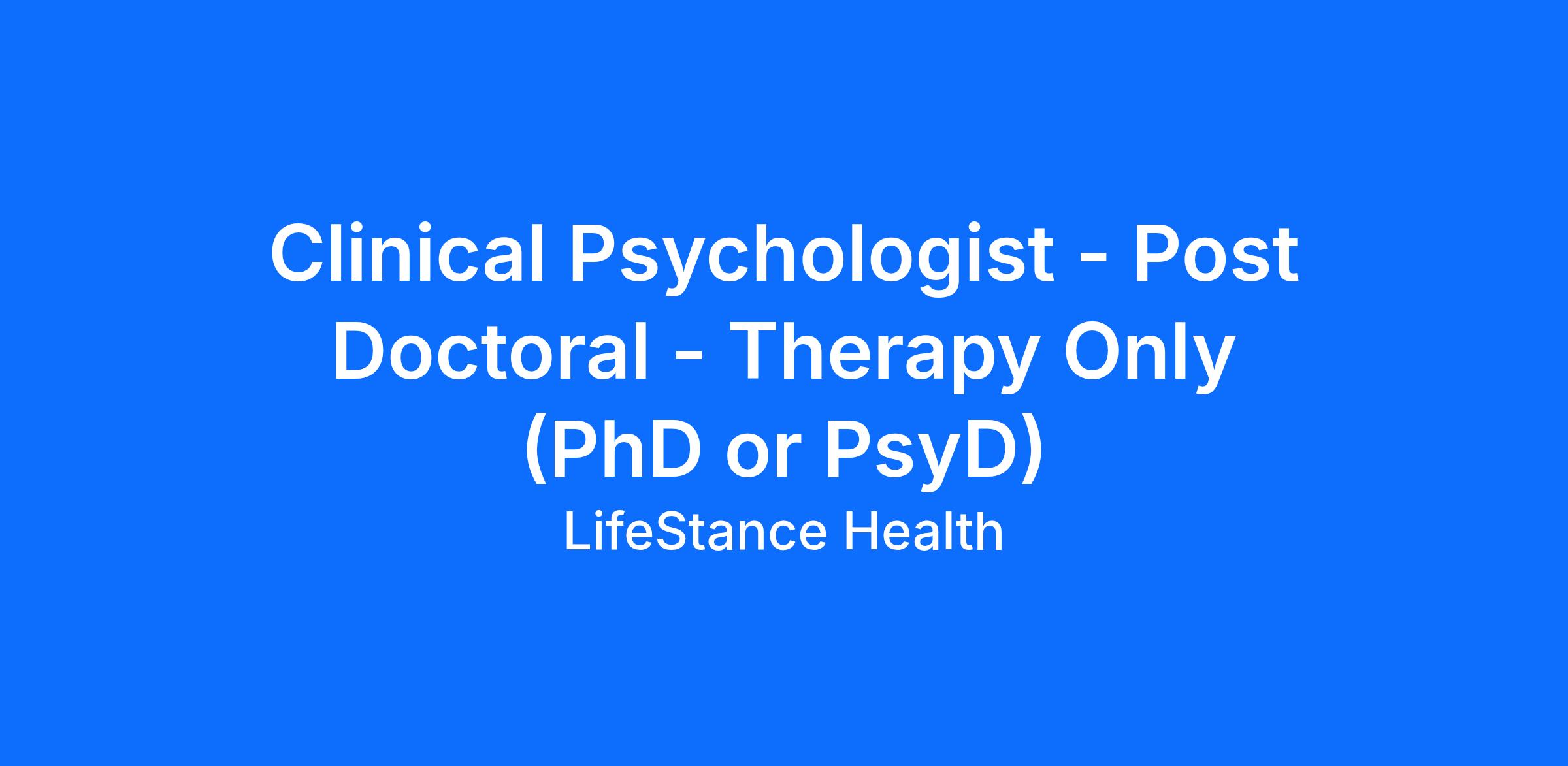 Clinical Psychologist - Post Doctoral - Therapy Only (PhD or PsyD)