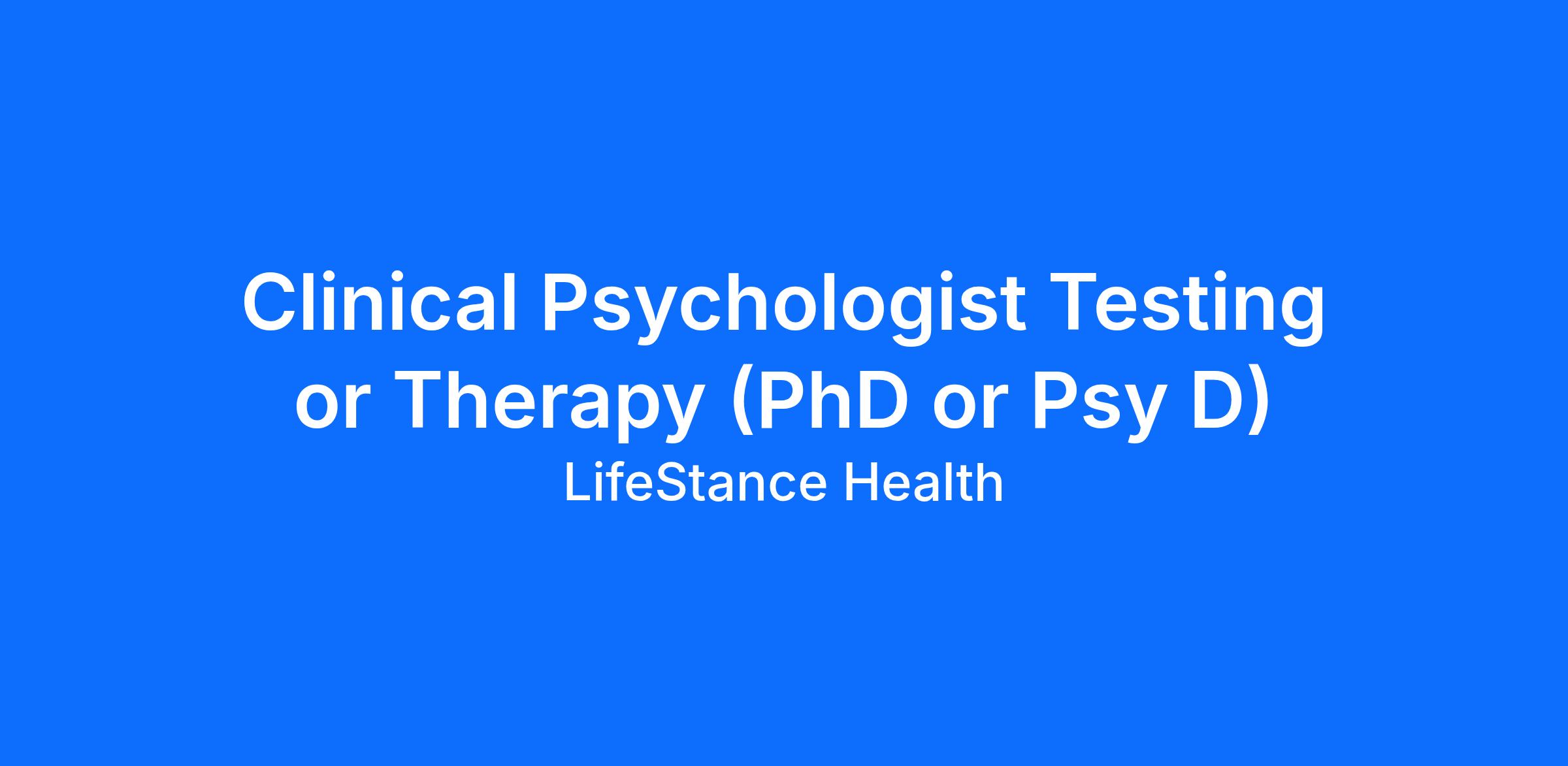 Clinical Psychologist Testing or Therapy (PhD or Psy D)