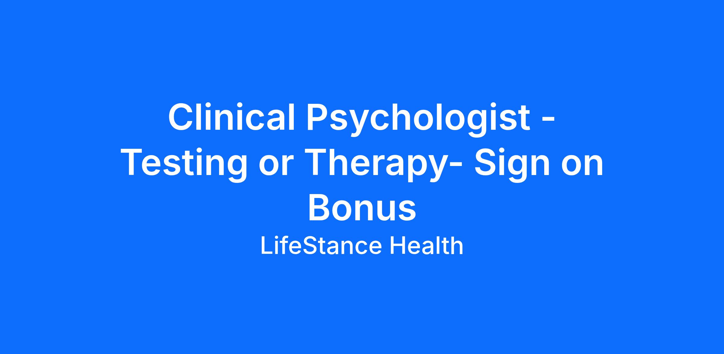 Clinical Psychologist -Testing or Therapy- Sign on Bonus
