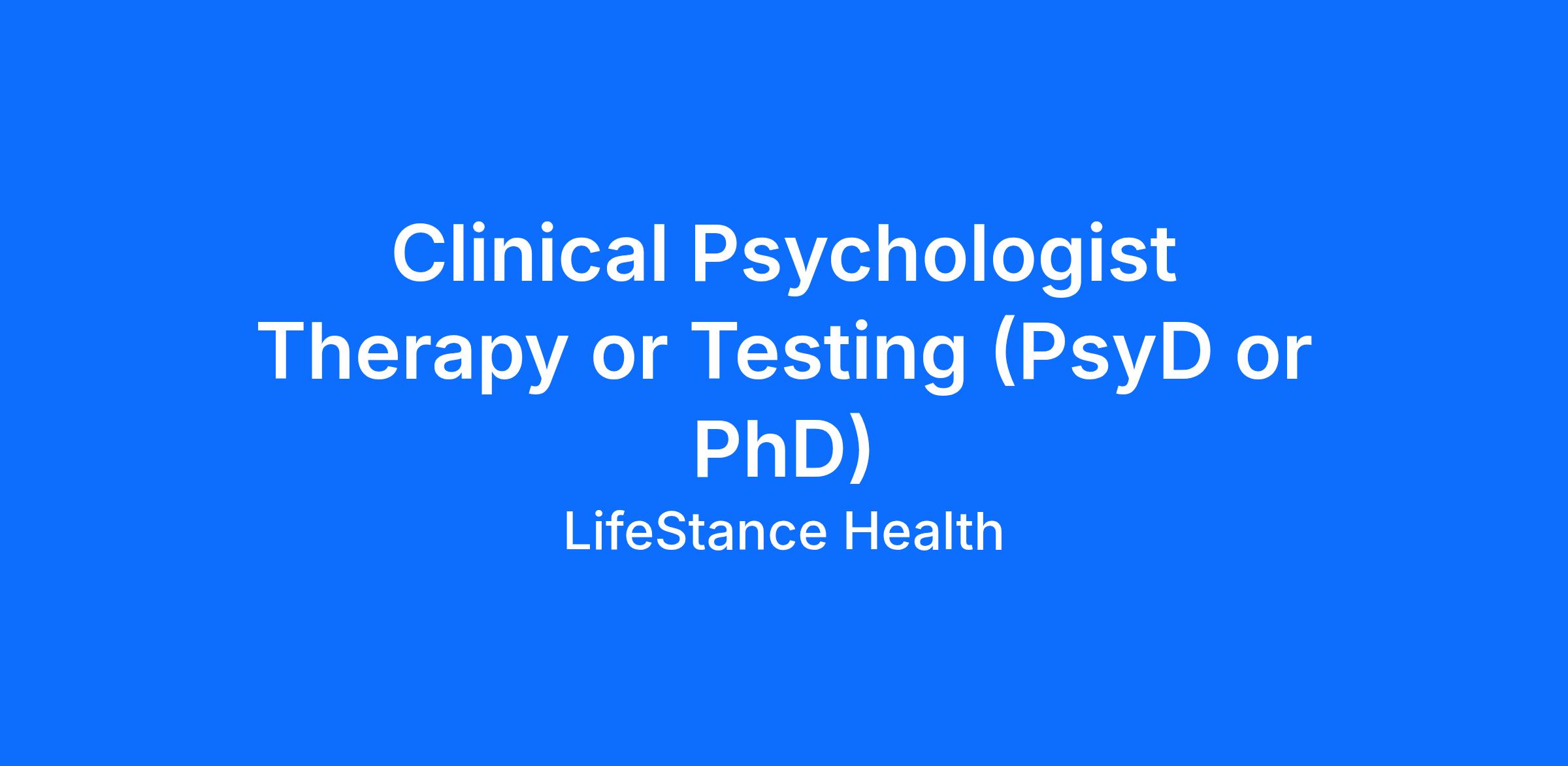 Clinical Psychologist Therapy or Testing (PsyD or PhD)
