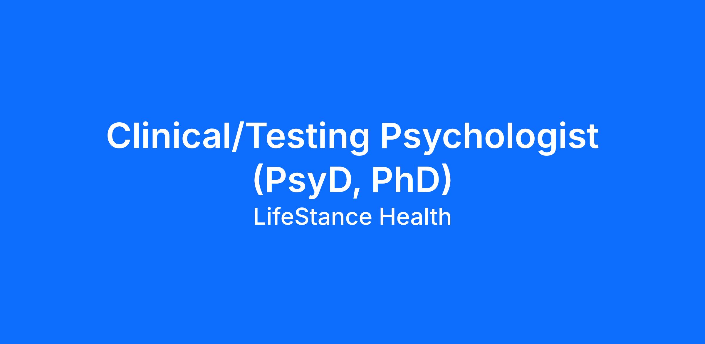 Clinical/Testing Psychologist (PsyD, PhD)