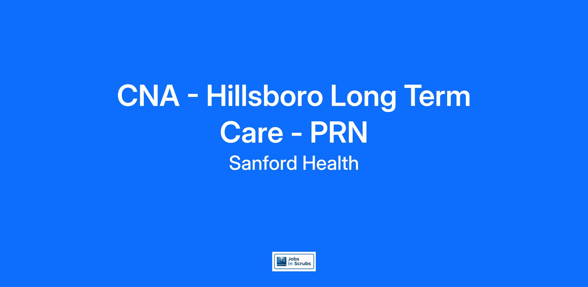 The Hillsboro Long Term Care (LTC) facility has an opening for a PRN Certified Nursing Assistant (CNA)!
