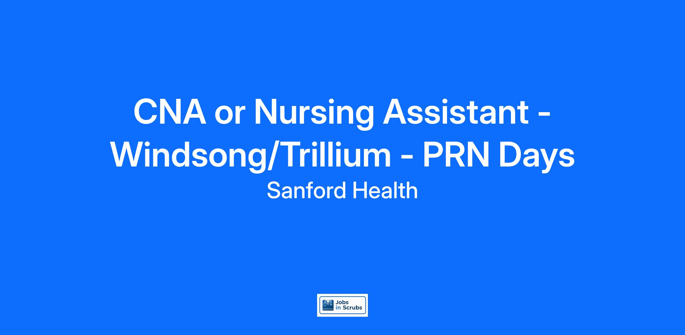 CNA or Nursing Assistant - Windsong/Trillium - PRN Days