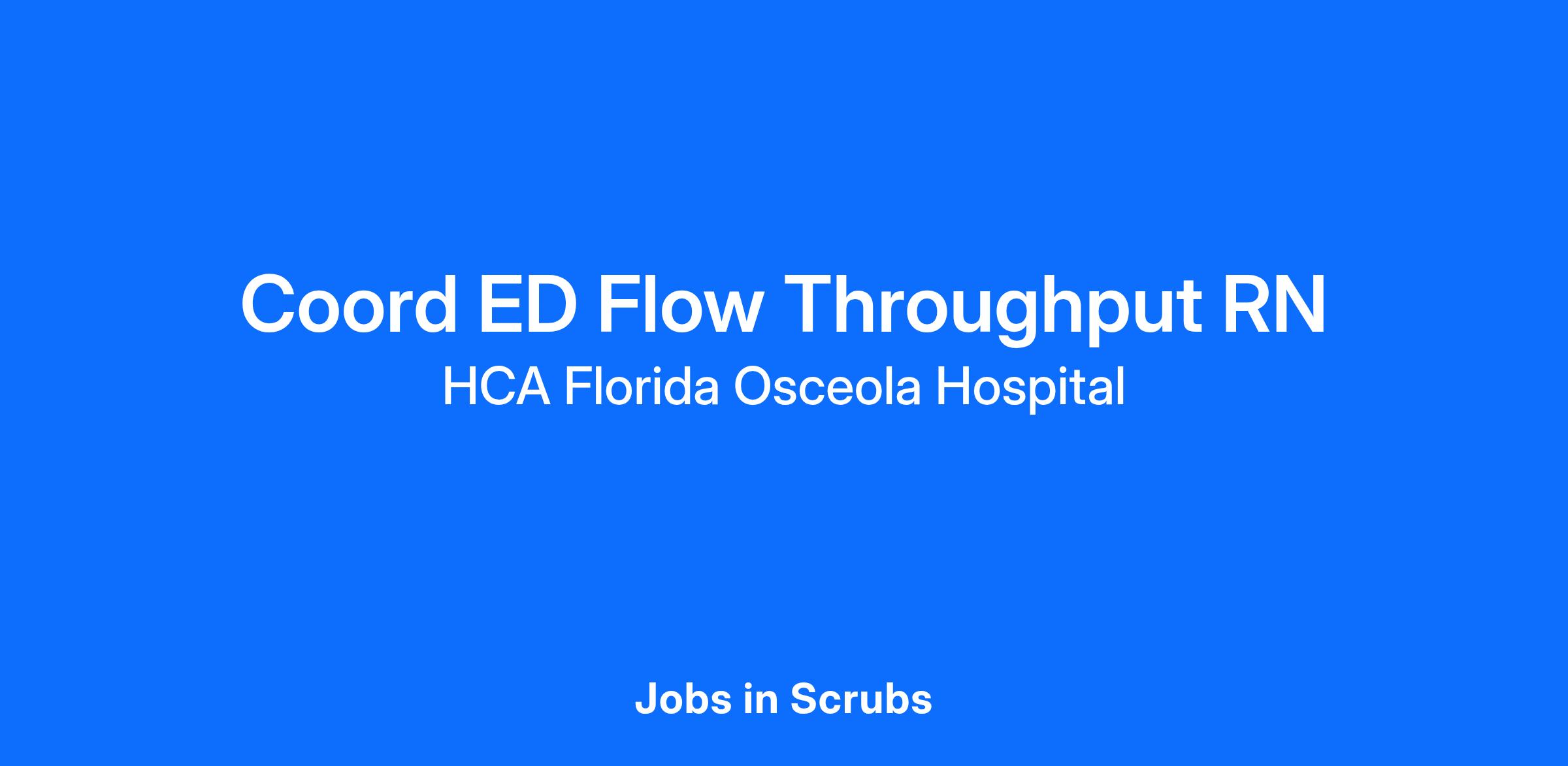 Are you passionate about the patient experience? At HCA Healthcare, we are committed to caring for patients with purpose and integrity. We care like family! Jump-start your career as a(an) Coord ED Flow Throughput RN today with HCA Florida Osceola Hospital.