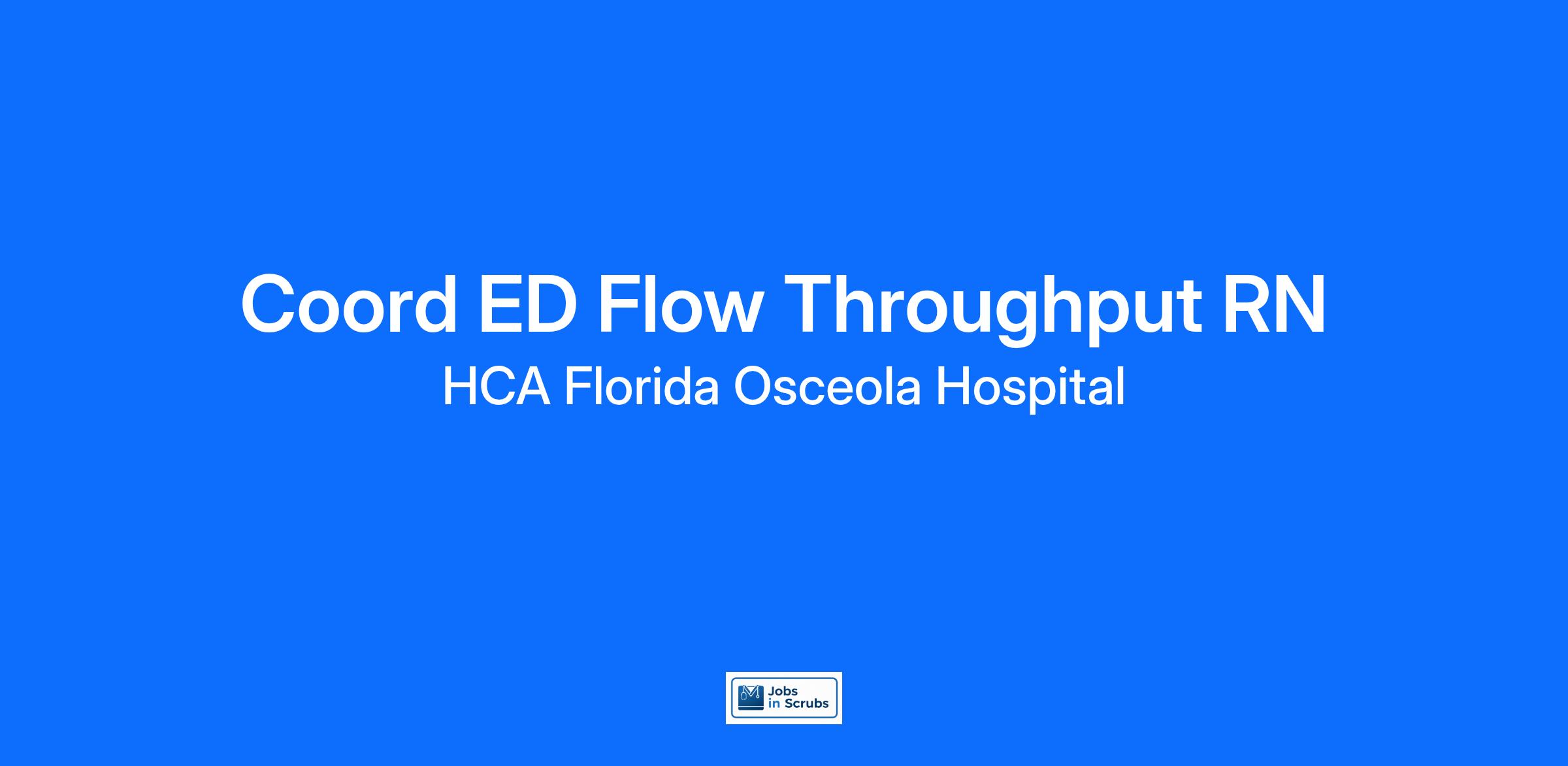 Are you passionate about the patient experience? At HCA Healthcare, we are committed to caring for patients with purpose and integrity. We care like family! Jump-start your career as a(an) Coord ED Flow Throughput RN today with HCA Florida Osceola Hospital.