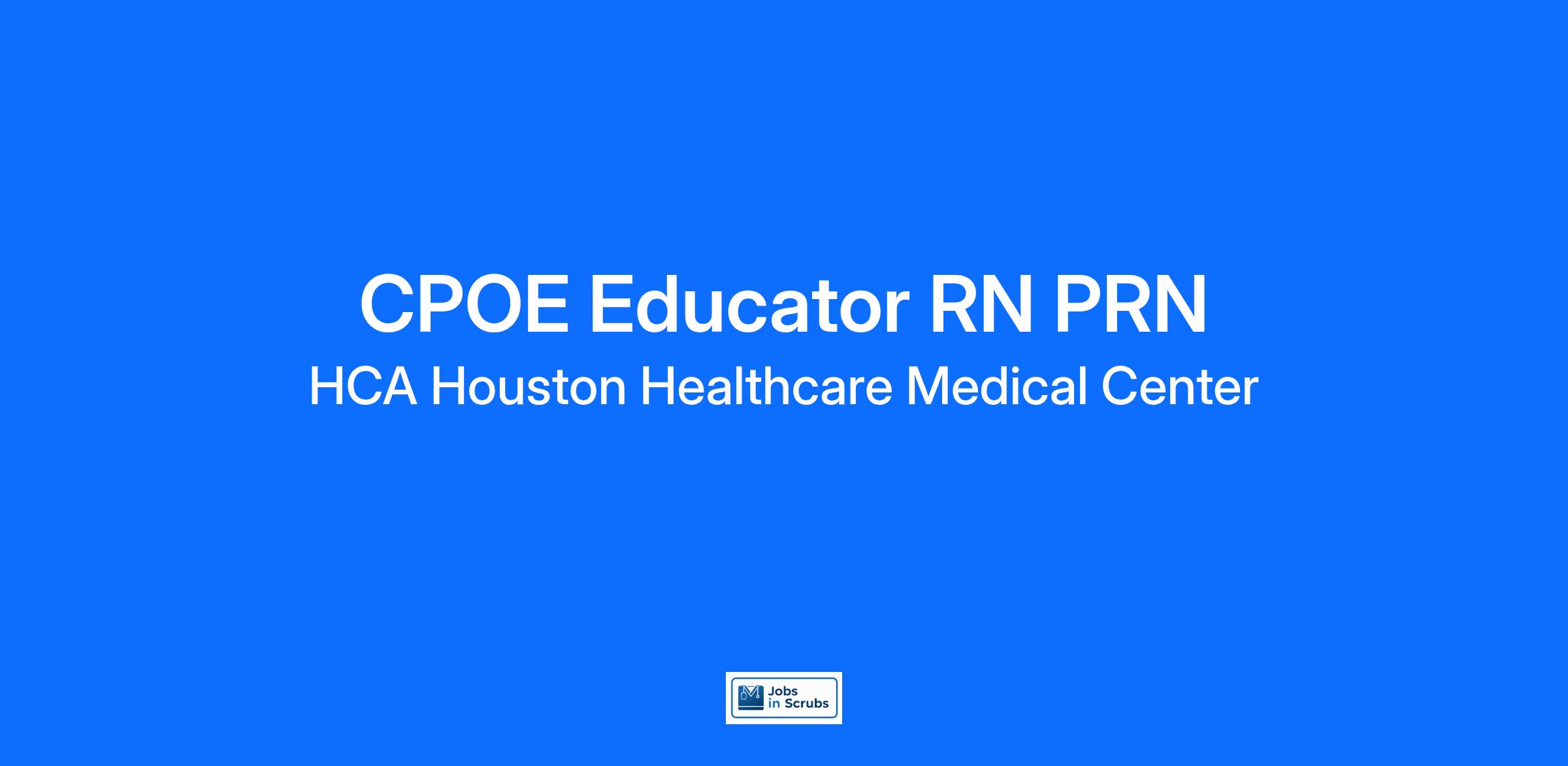 Do you have the PRN career opportunities as a(an) CPOE Educator RN PRN you want with your current employer? We have an exciting opportunity for you to join HCA Houston Healthcare Medical Center which is part of the nation's leading provider of healthcare services, HCA Healthcare.