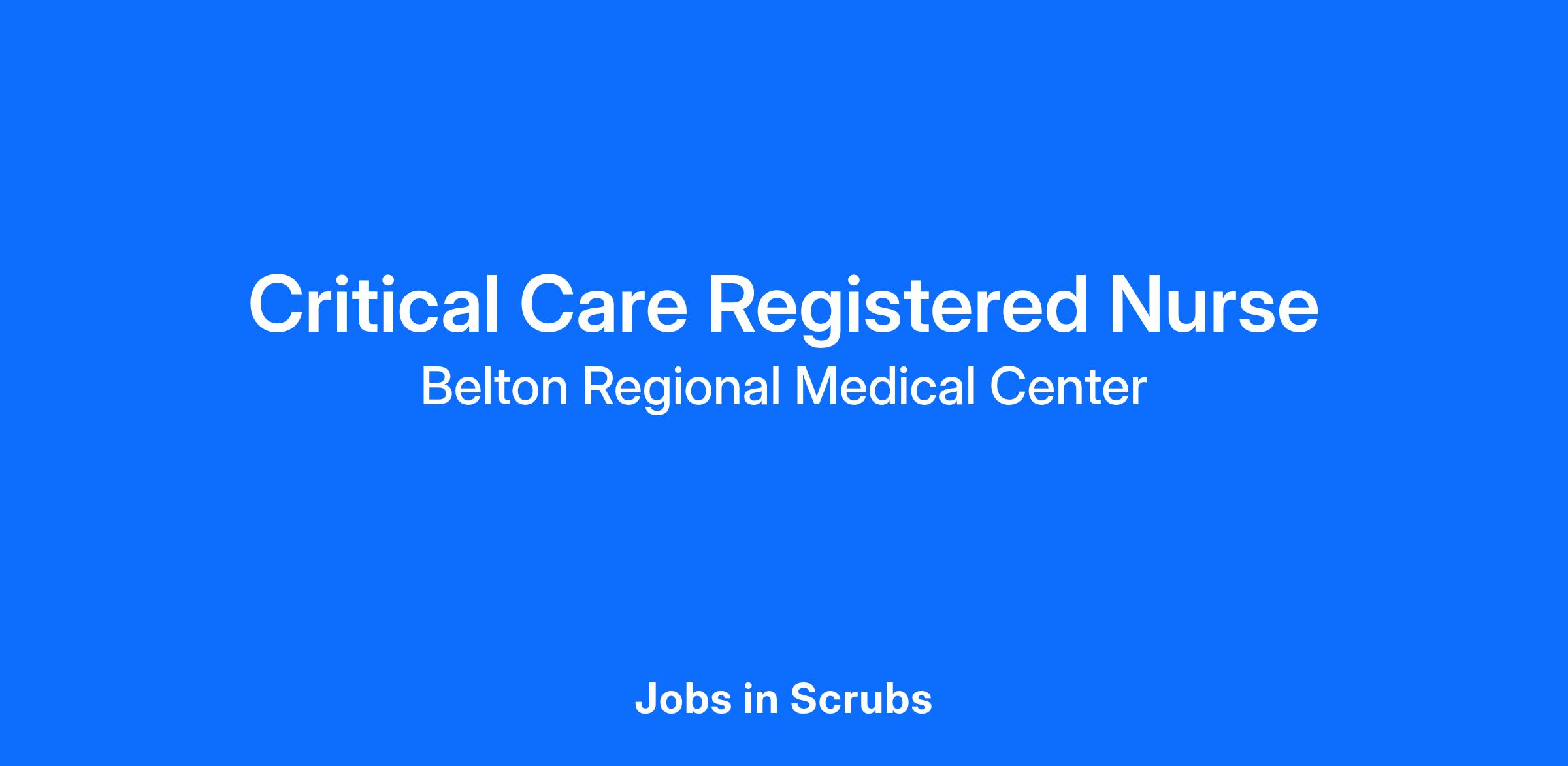 Do you want to be appreciated daily? Our nurses are celebrated for being on the front line, empathetic for patients. At Belton Regional Medical Center our nurses set us apart from any other healthcare provider. We are seeking a Critical Care Registered Nurse to join our healthcare family.