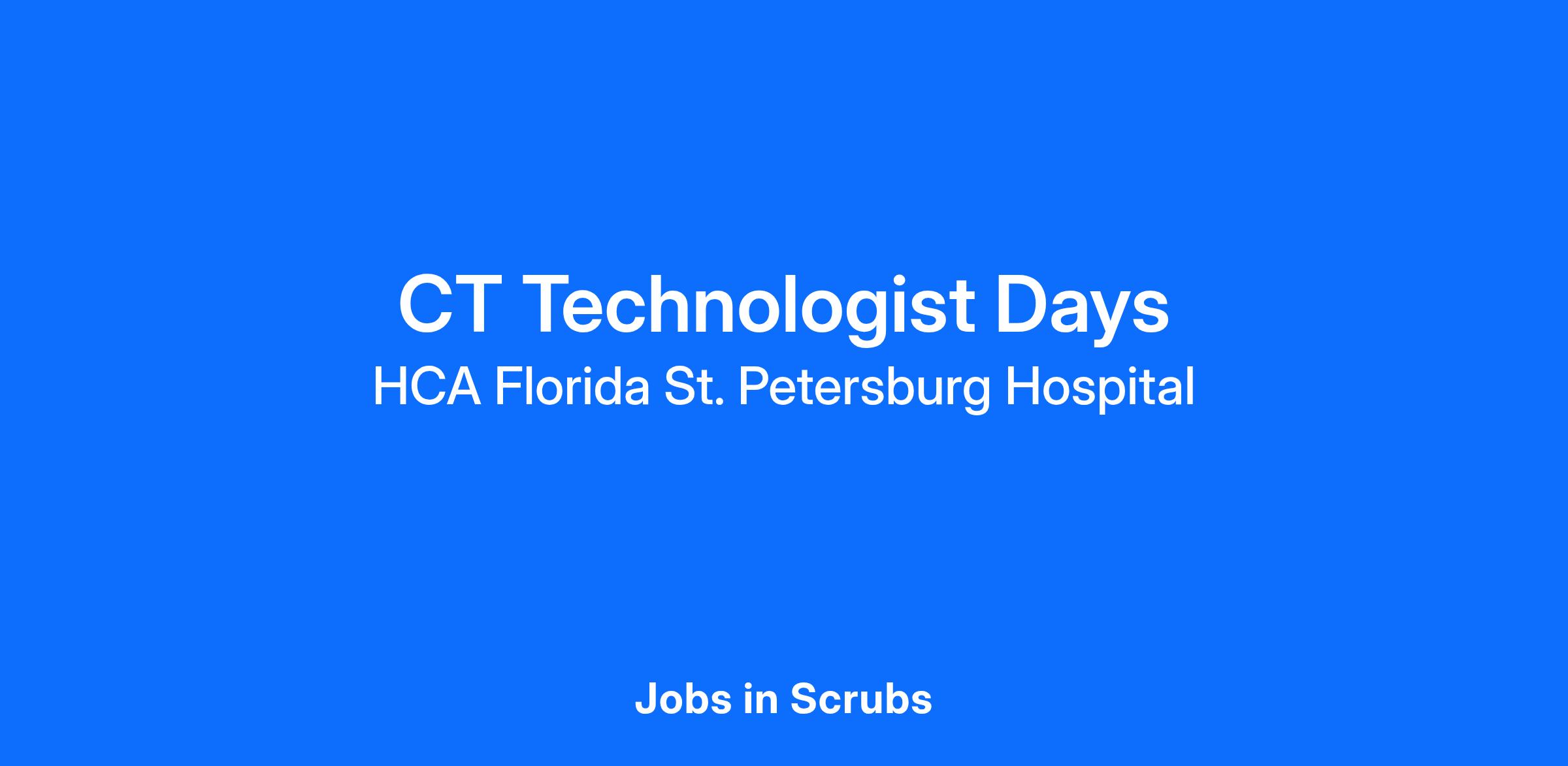 Experience the HCA Healthcare difference where colleagues are trusted, valued members of our healthcare team. Grow your career with an organization committed to delivering respectful, compassionate care, and where the unique and intrinsic worth of each individual is recognized. Submit your application for the opportunity below:CT Technologist DaysHCA Florida St. Petersburg Hospital