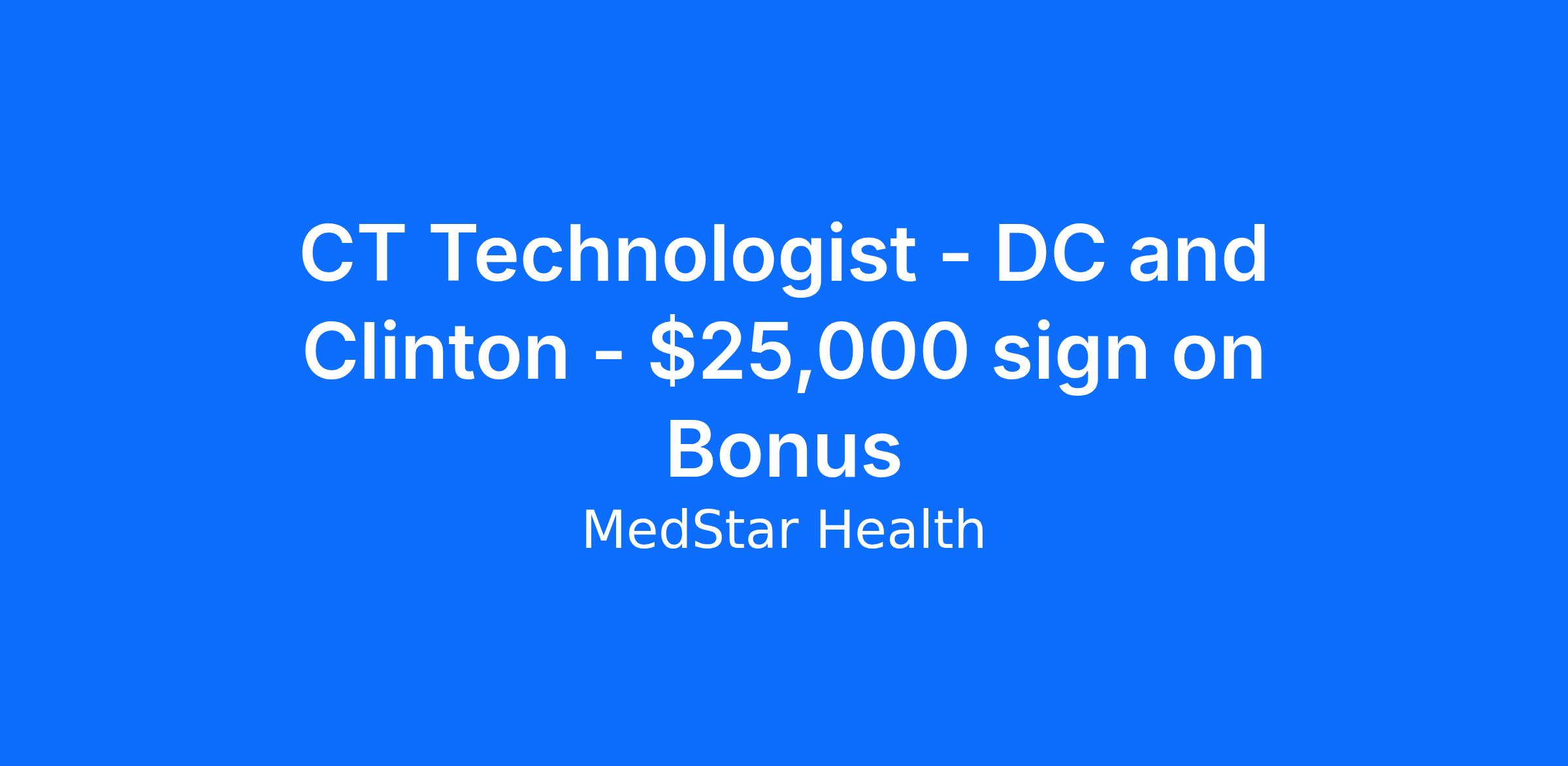 CT Technologist - DC and Clinton - $25,000 sign on Bonus