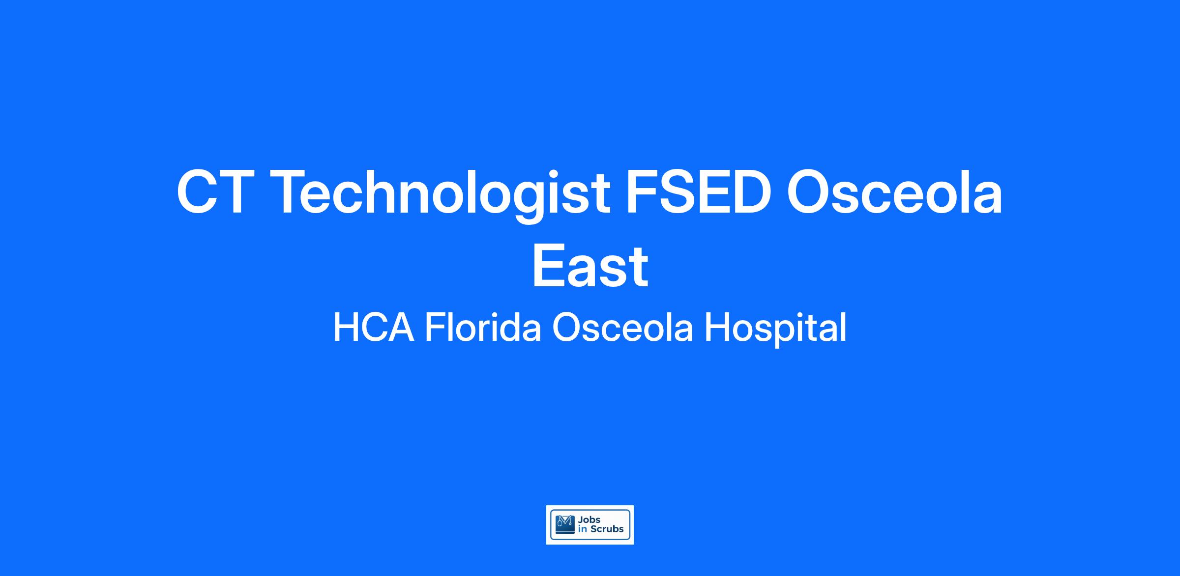 Come join our team as a(an) CT Technologist FSED Osceola East. We care for our community! Just last year, HCA Healthcare and our colleagues donated $13.8 million dollars to charitable organizations. Apply Today!