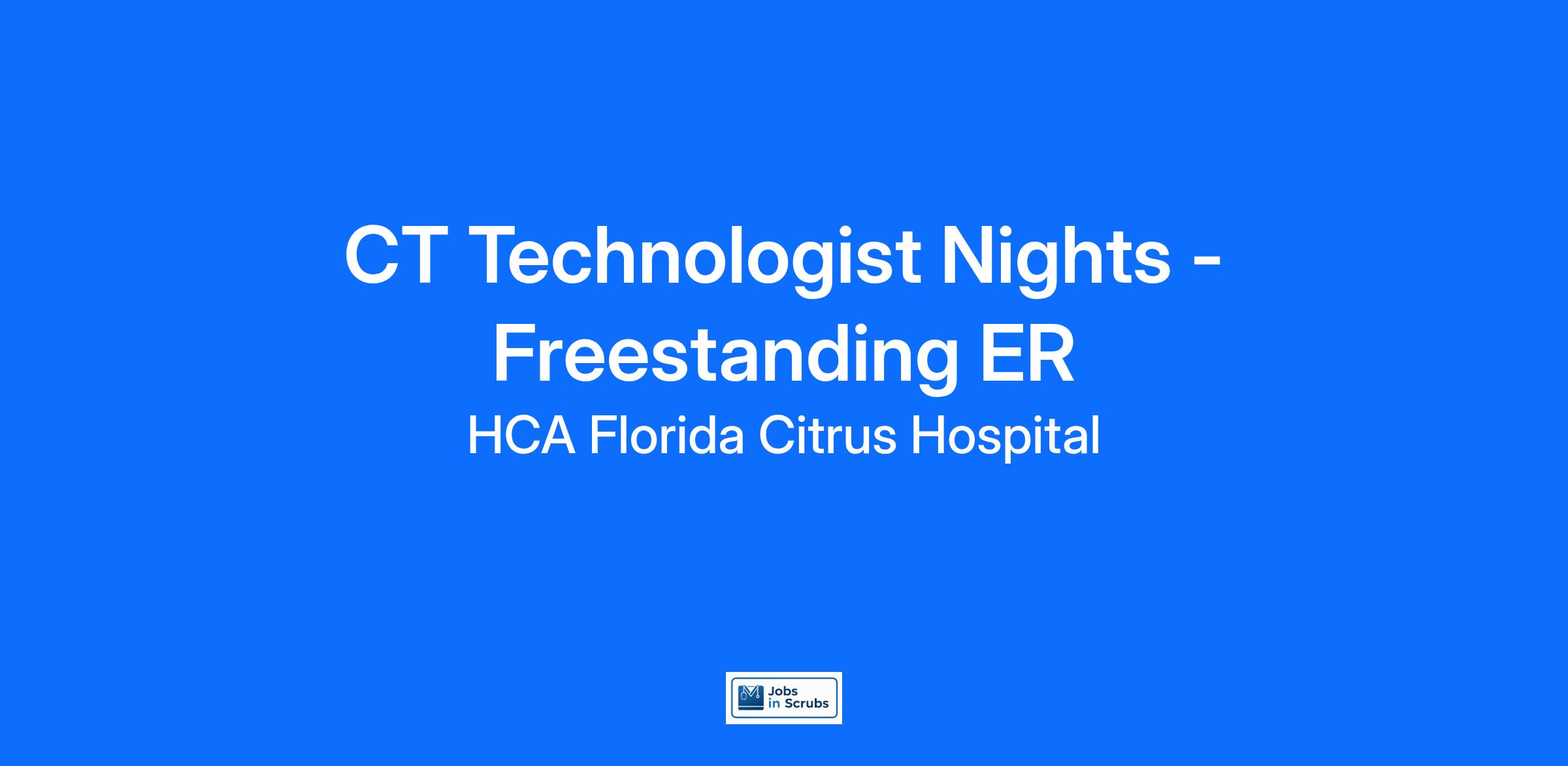 Do you want to join an organization that invests in you as a(an) CT Technologist Nights - Freestanding ER? At HCA Florida Citrus Hospital, you come first. HCA Healthcare has committed up to $300 million in programs to support our incredible team members over the course of three years.