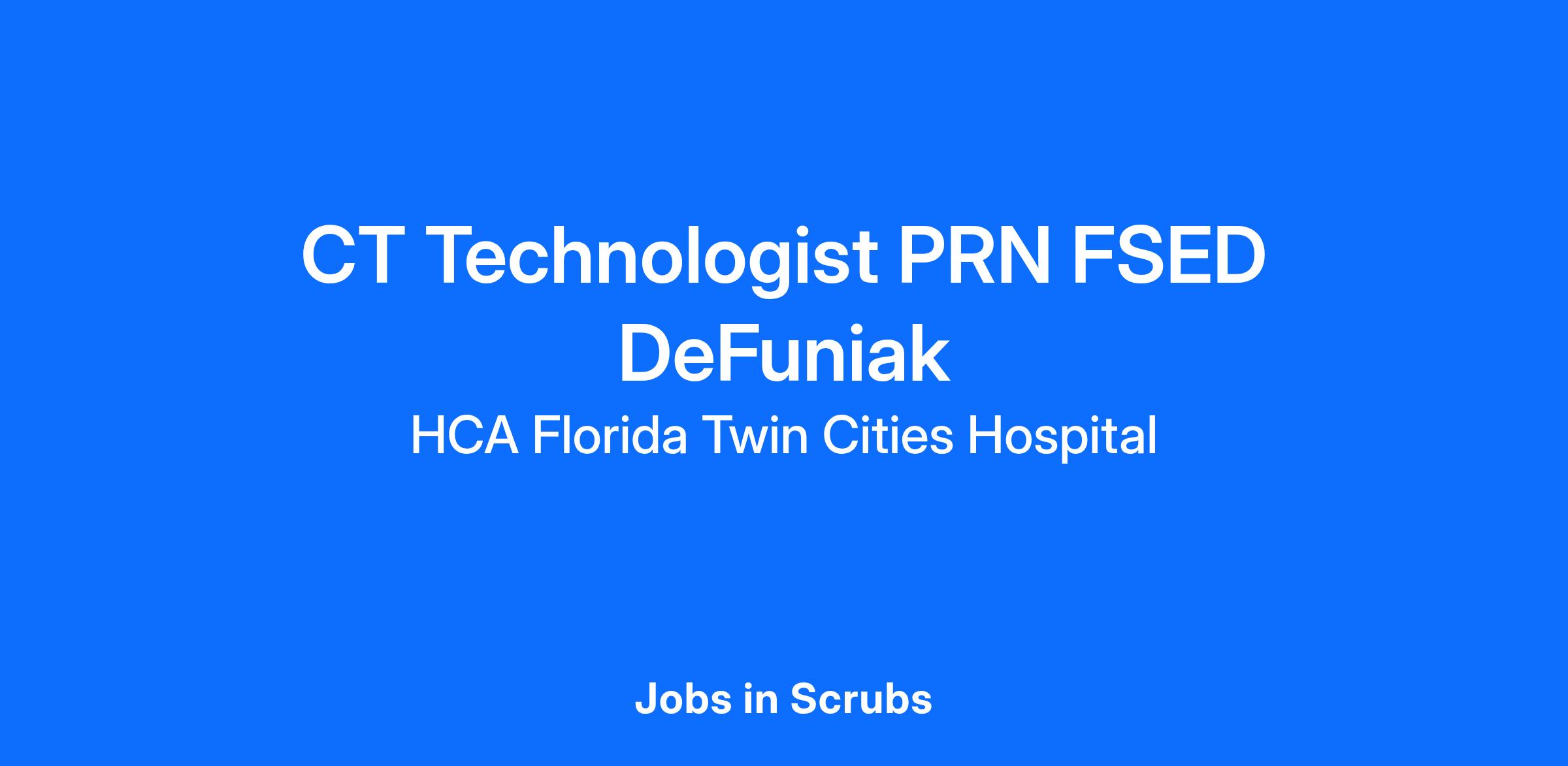 Experience the HCA Healthcare difference where colleagues are trusted, valued members of our healthcare team. Grow your career with an organization committed to delivering respectful, compassionate care, and where the unique and intrinsic worth of each individual is recognized. Submit your application for the opportunity below:CT Technologist PRN FSED DeFuniakHCA Florida Twin Cities Hospital