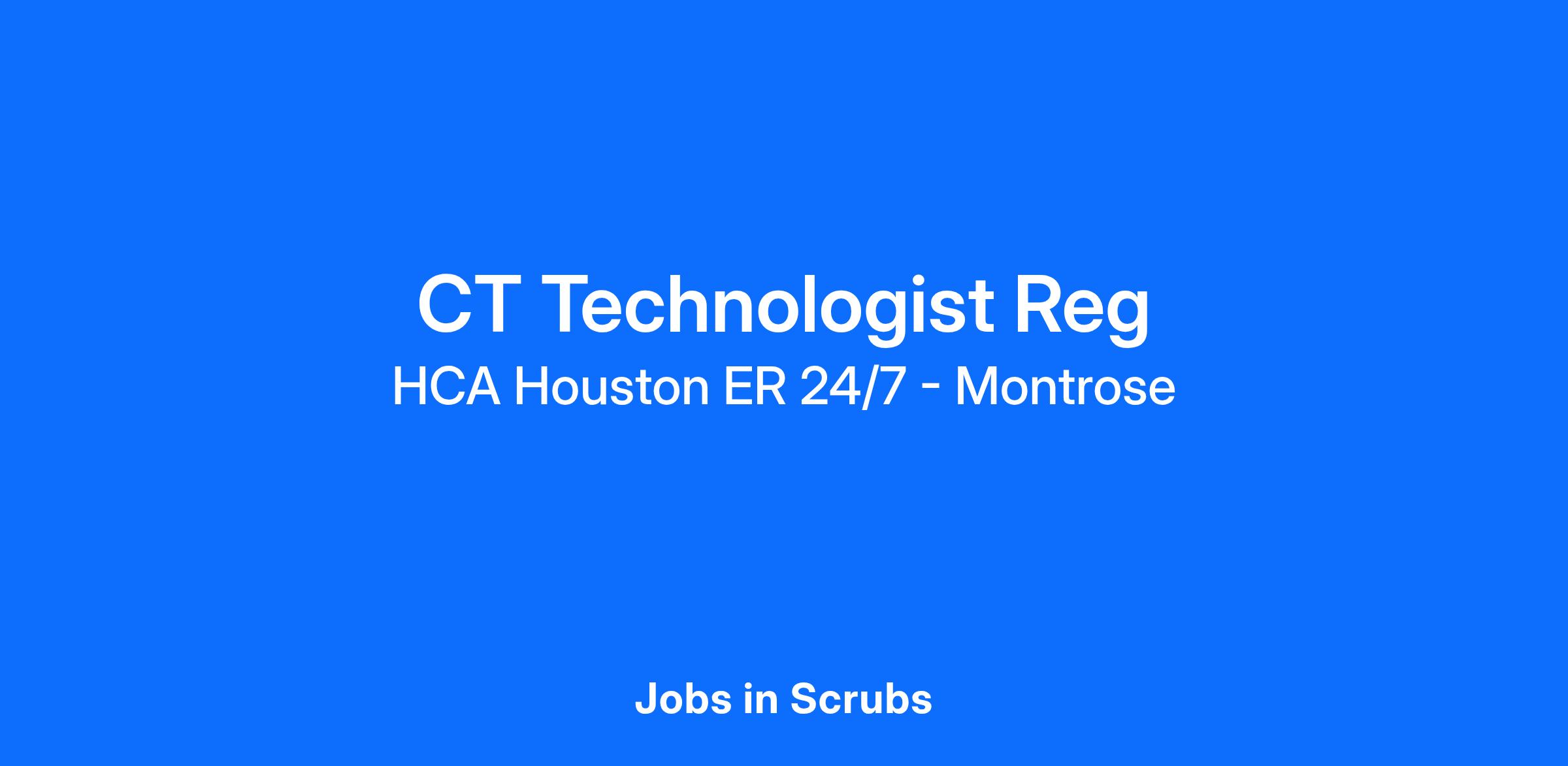 Are you passionate about the patient experience? At HCA Healthcare, we are committed to caring for patients with purpose and integrity. We care like family! Jump-start your career as a(an) CT Technologist Reg today with HCA Houston ER 24/7 - Montrose.