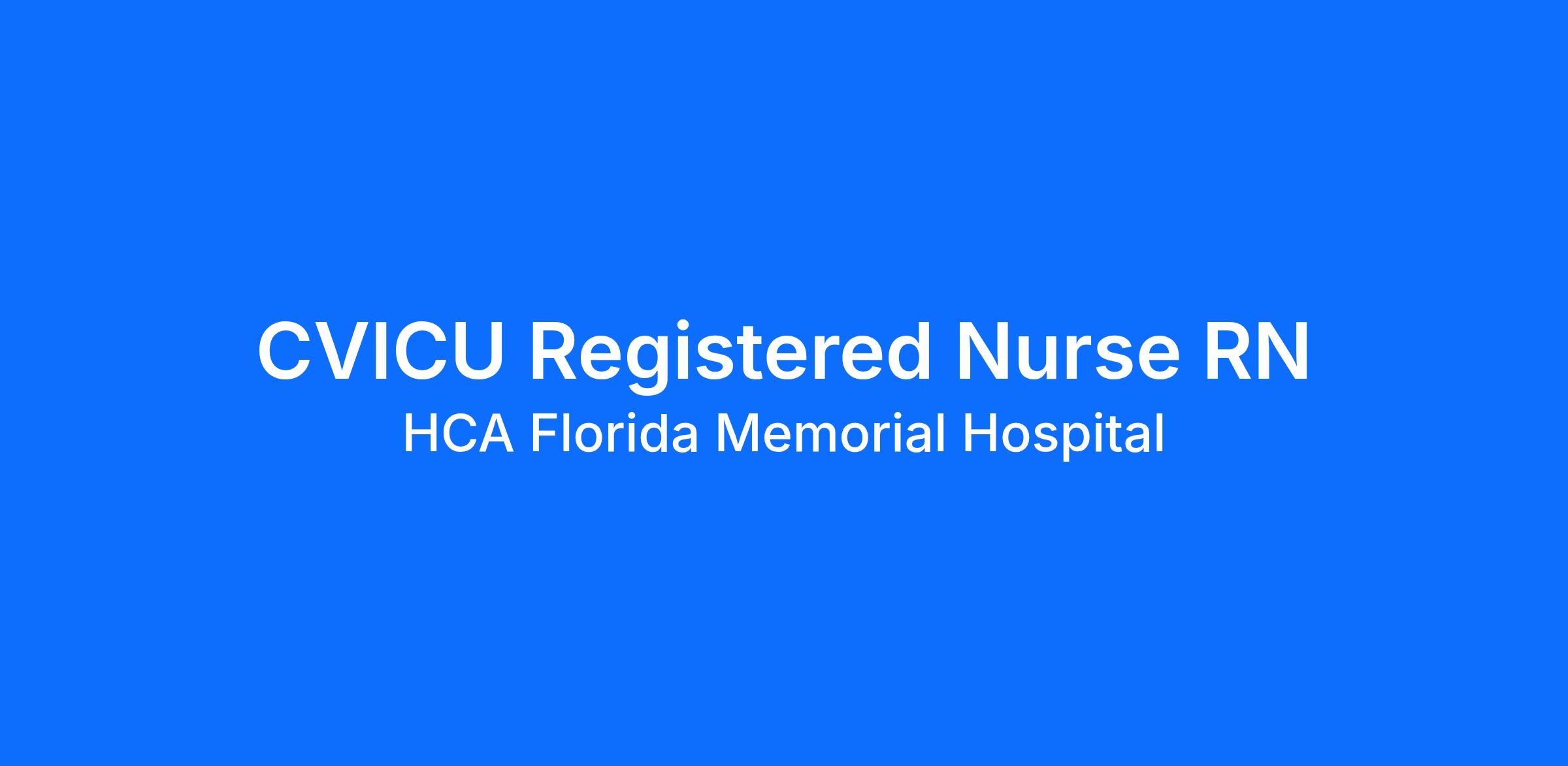 Strong staffing Support when it matters most. Technology and tools that streamline patient monitoring and communication to help you work more efficiently. Robust supply chains to keep you fully equipped. Ongoing clinical education to improve your skills. As a Cardiovascular Intensive Care Unit (CVICU) Registered Nurse (RN) at HCA Florida Memorial Hospital, you’ll have all the staffing support, technology and resources you need to deliver safe, high-quality care—so you can focus on what you do best.