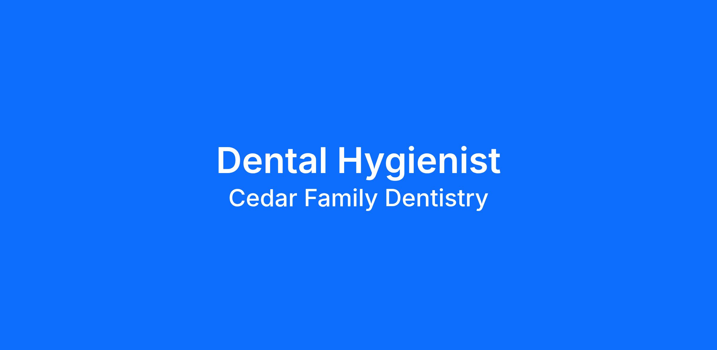 As a Dental Hygienist at Cedar Family Dentistry, you’ll be recognized as an elite clinical provider and patient advocate. You’ll be an integral member of the patient care team, giving your patients the time and care they need, deserve and desire. With best-in-class support through our robust Hygiene mentor program and unparalleled educational offerings to enhance your clinical skills – you’ll be 100% supported as you provide exceptional lifetime care to your patients!