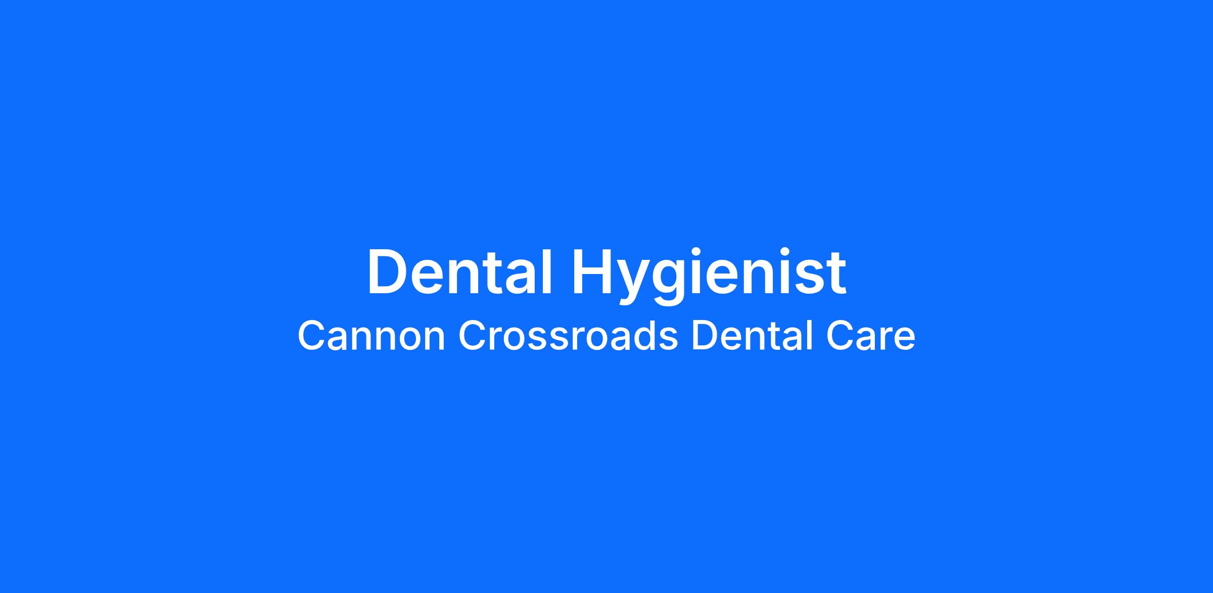 Cannon Crossroads Dental Care is looking for a Monday ONLY Dental Hygienist to join our team.