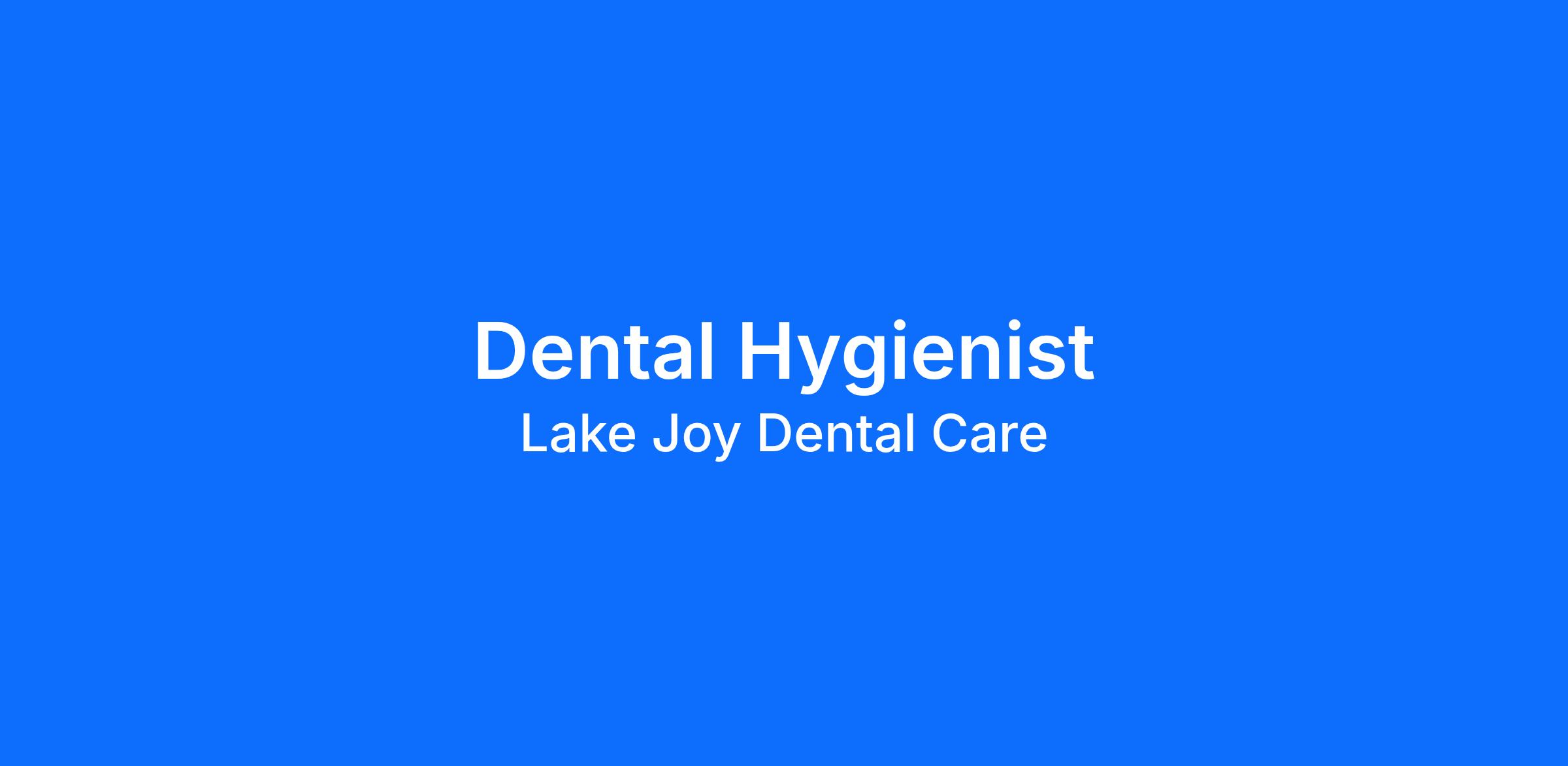 Lake Joy Dntal Care is looking for a Dental Hygienist to join our team Monday 8a-12p Tuesday -Friday 7:30a-5p