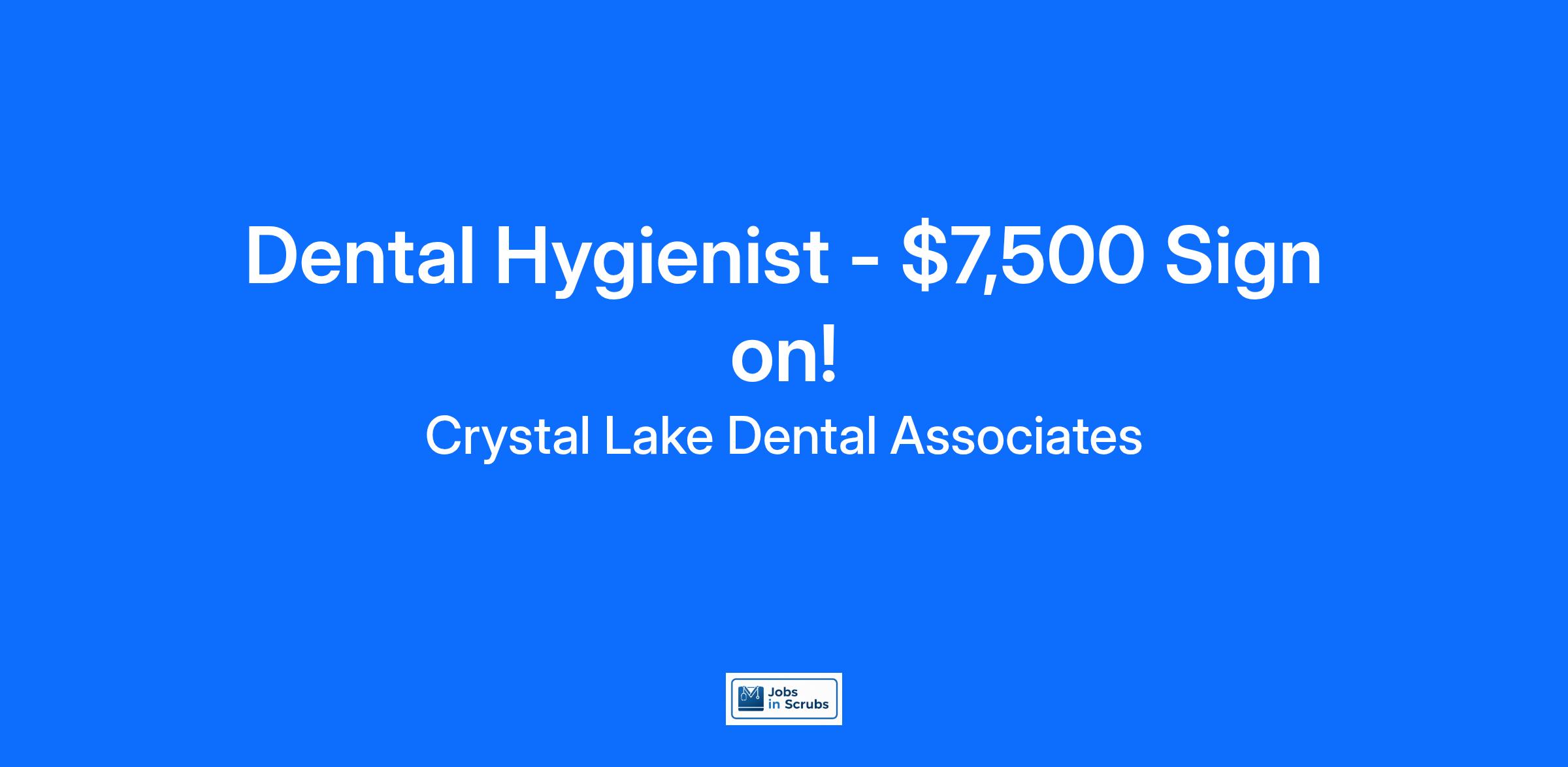 Crystal Lake Dental Associates is looking for a hygienist to join our team! Hygiene coverage needed Monday, Wednesday and Friday! Pick one, two or all three days!!!!