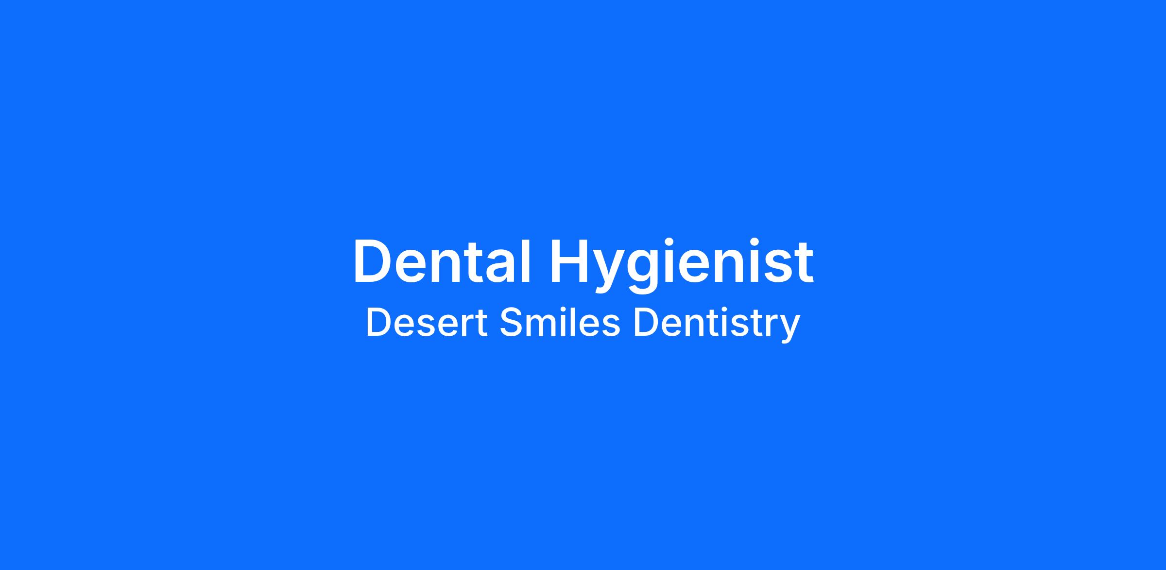 Desert Smiles Dentistry is looking for a Full Time Dental Hygienist to join our team Mon 8-5pm, Tues 7-4pm, Wed 7-4pm, Thurs 8-5pm Fri - OFF