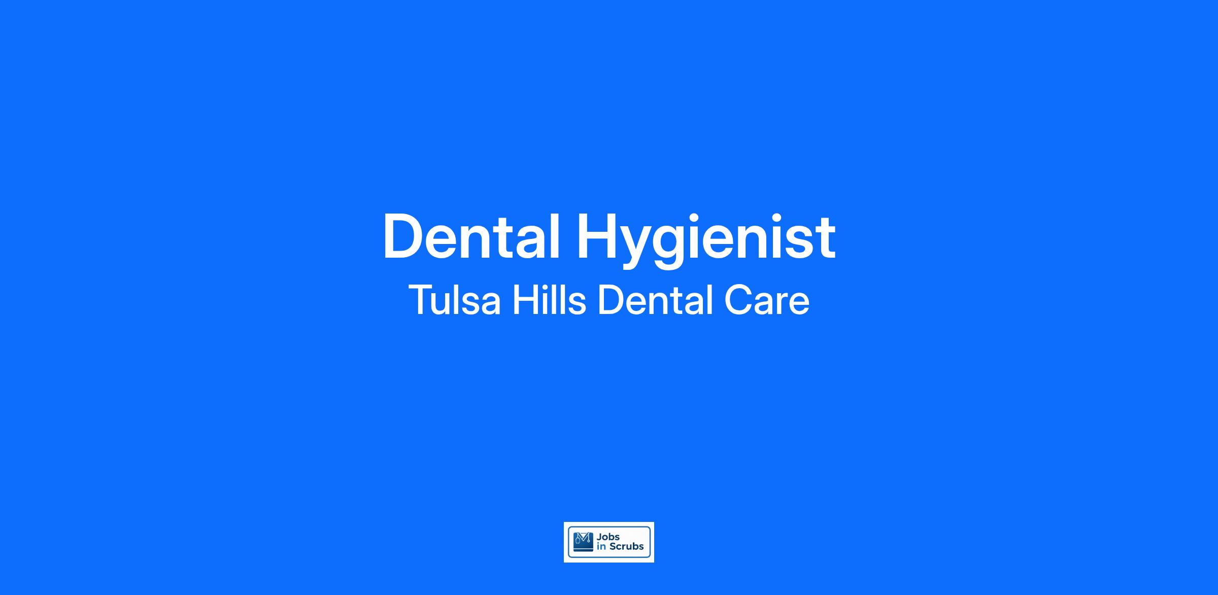 Tulsa Hills Dental Care is looking for a Dental Hygienist to join our team. Tuesday 730a-5pm, Wednesday 730am-7pm, Thursday 630a-12pm, Friday 730a-2pm