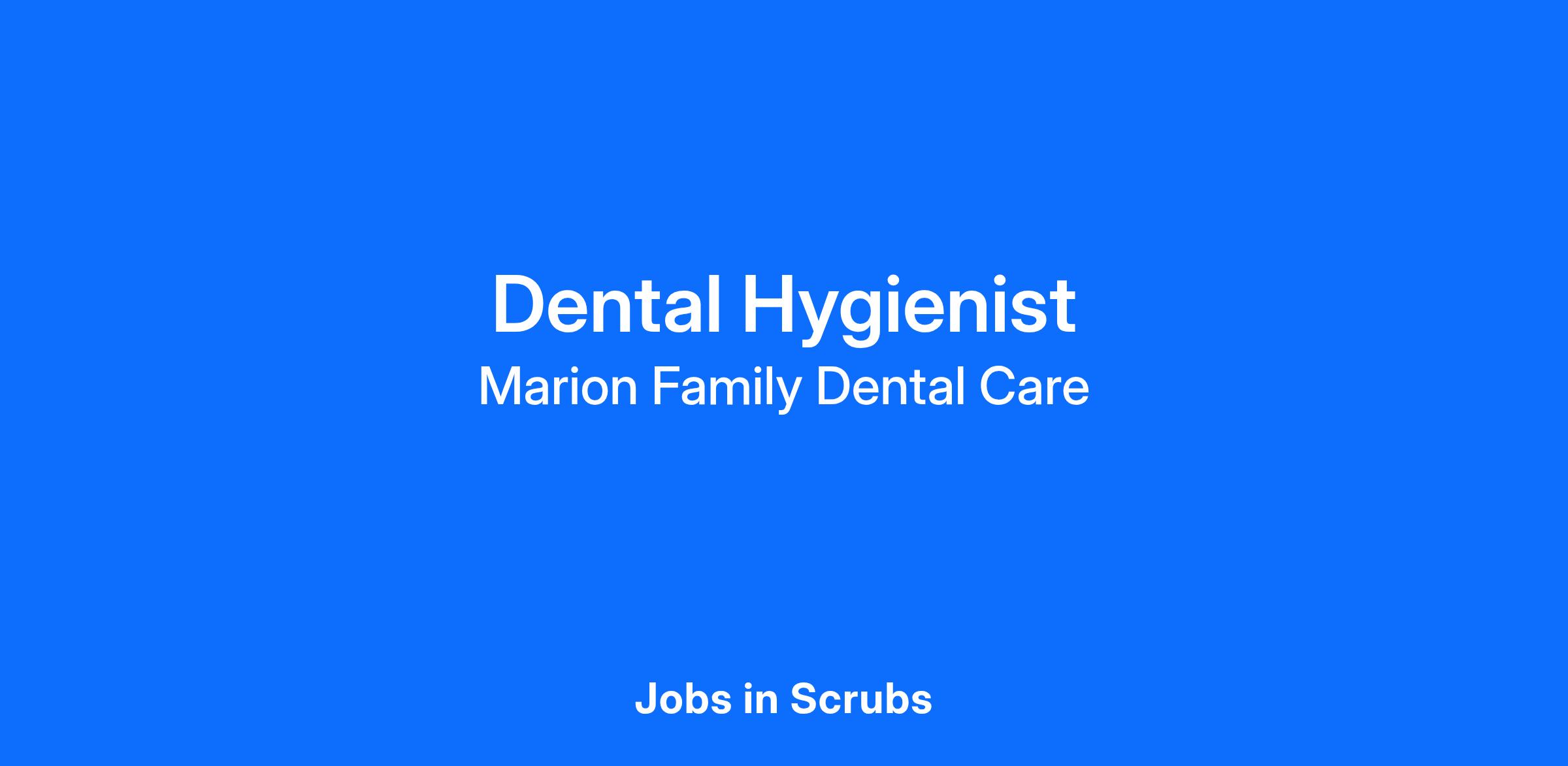 Marion Family Dental Care is looking for a Full Time Dental Hygienist to join our team. Part Time Opportunity also available! NO Weekends! Competitive Pay. We offer a full benefits package, bonus opportunities, CEs, and growth potential! We are a team who loves to have fun in a busy office while always putting out patients needs first! If you are looking for an office that is laid back and fun, we want to hear from you!