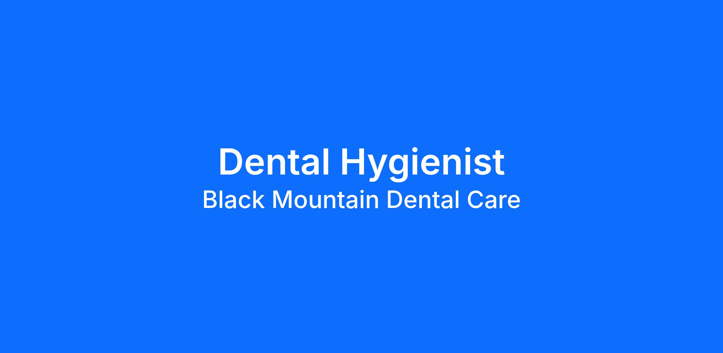 Black Mountain Dental Care is looking for a Dental Hygienist to join our team. Monday&Tuesday 730a-530p Wednesday 630a-430p Thursday 1130a-730p