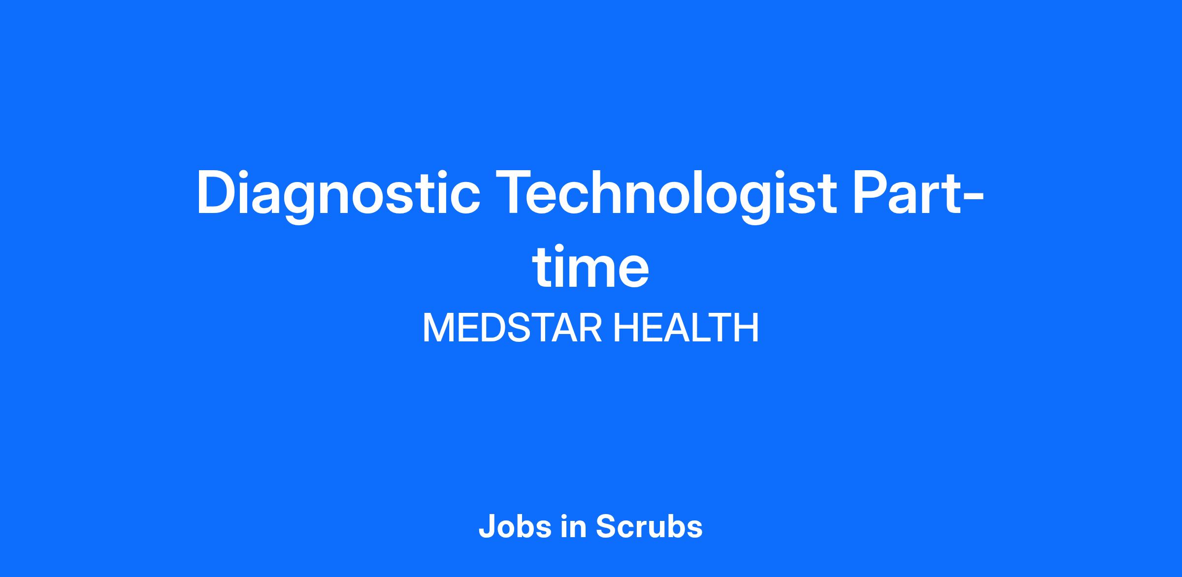 Medstar Health is looking for Diagnostic Technologist to join our team! This is a part-time position every other weekend Every other weekend Sat and Sunday evenings from 3p-1:30am. 10 hours per week.