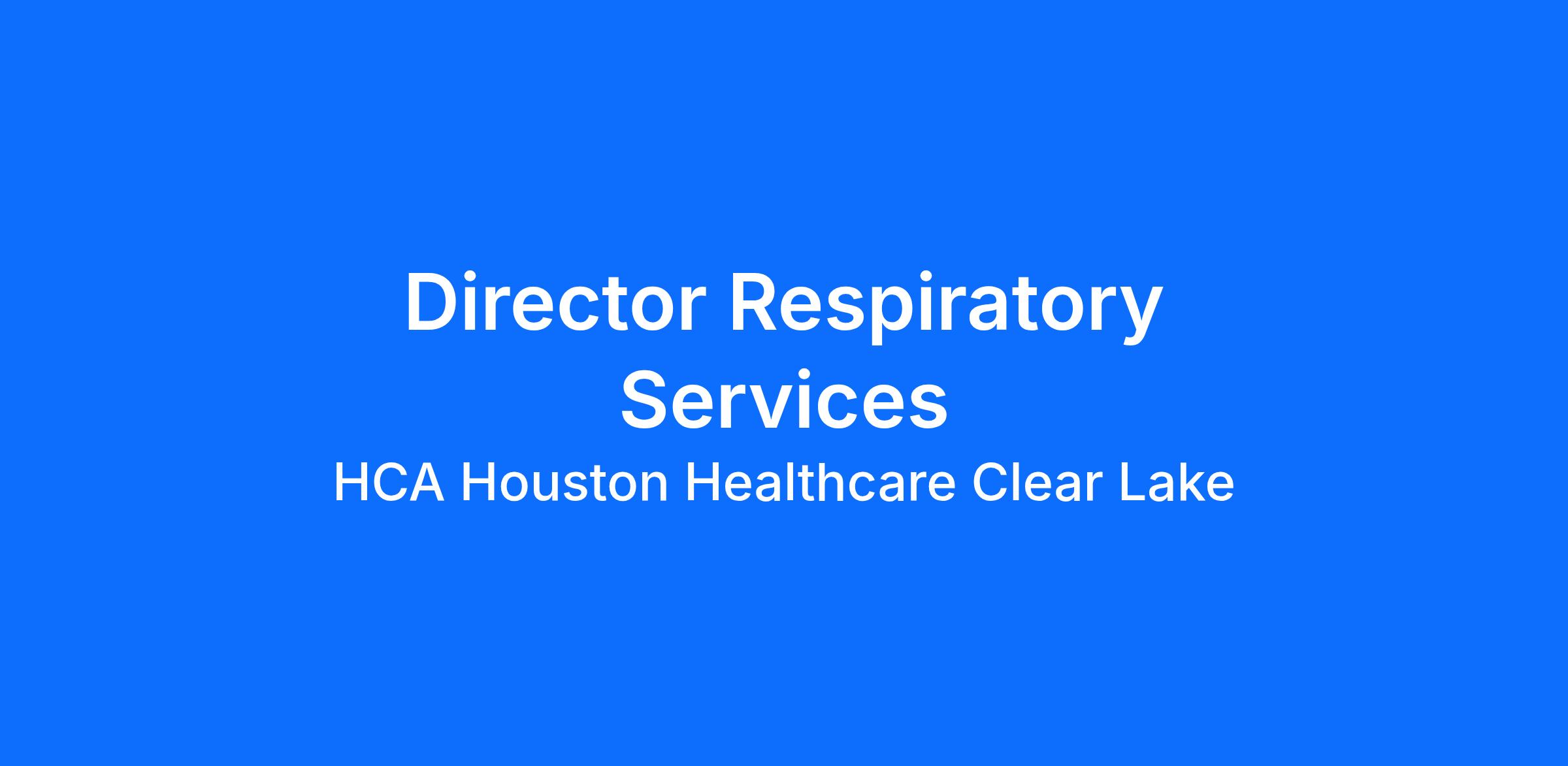 Are you ready to manage in a new era as a Director Respiratory Services where building a healthier tomorrow is more than a job? Our HCA Houston Healthcare Clear Lake team is committed to partnership, innovation, legacy and improving more lives in more ways. Share your resume today.