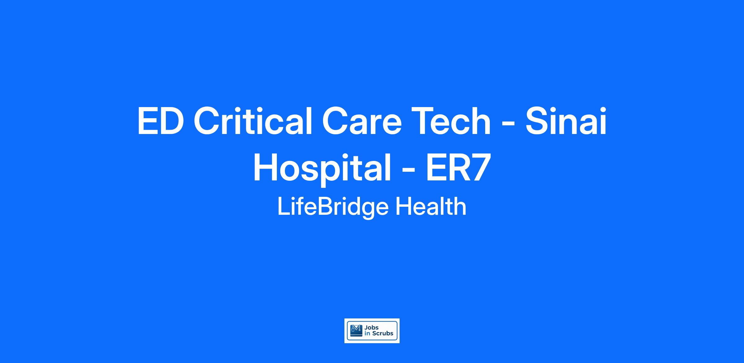 Sinai Hospital's Emergency Department is currently looking for a Critical Care Tech with a commitment to providing vital support in high-pressure situations and a compassionate approach to patient care.