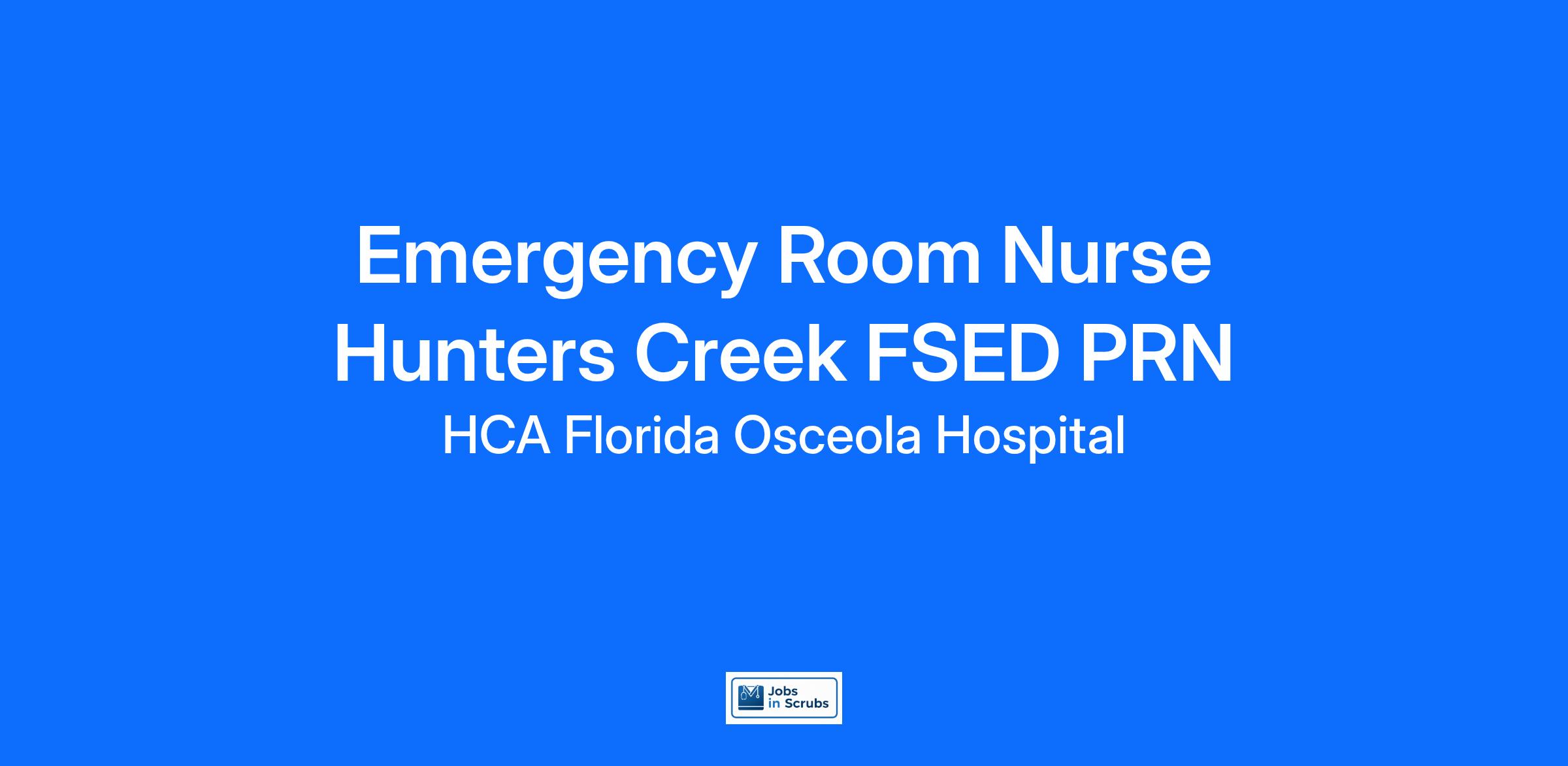 Do you currently have an opportunity to make a real impact with your work? With over 2,000 sites of care and serving over 31.2 million patient interactions every year, nurses at HCA Florida Osceola Hospital have the opportunity to make a real impact. As a(an) Emergency Room Nurse Hunters Creek FSED PRN you can be a part of change.