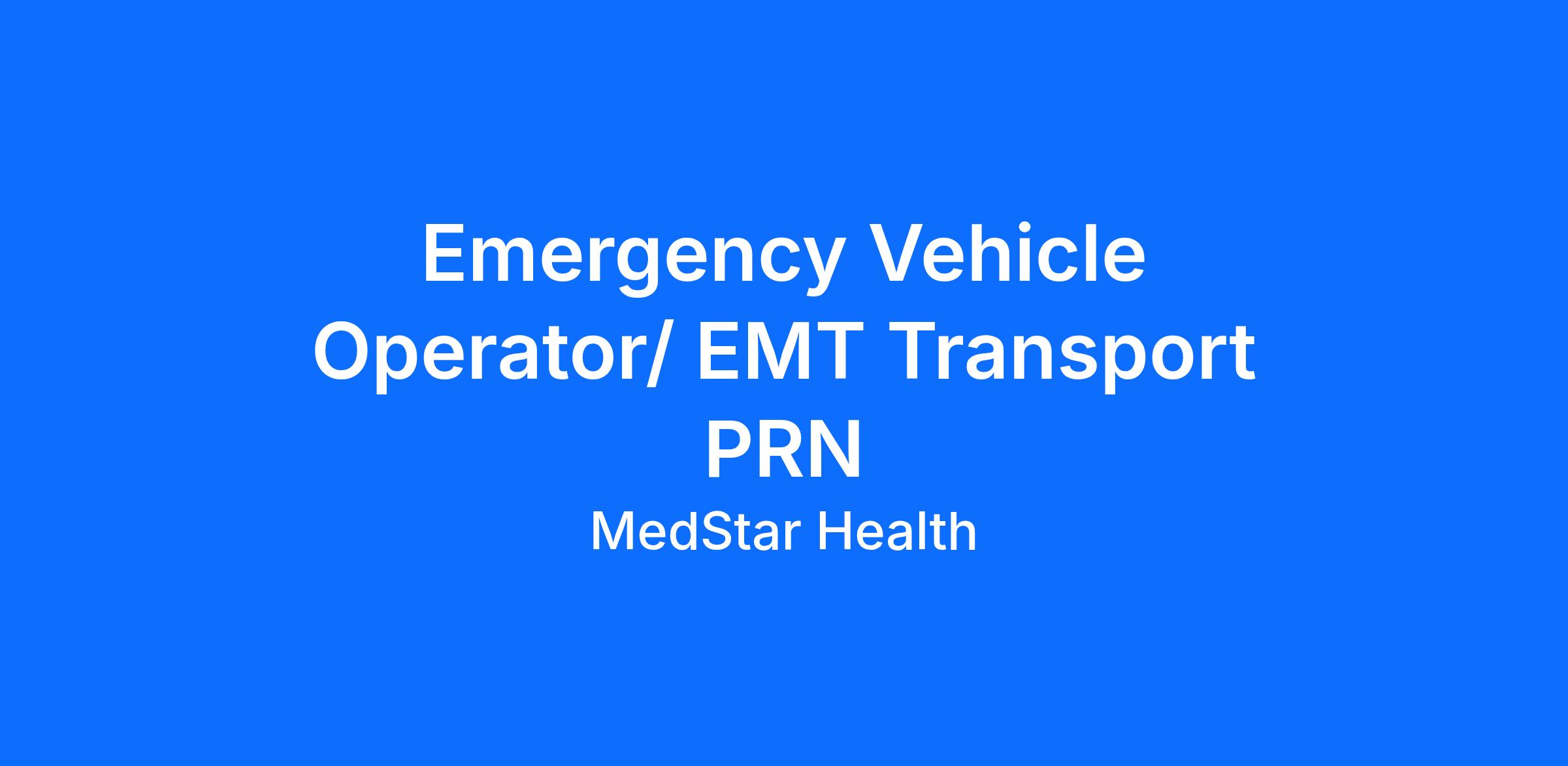 Emergency Vehicle Operator/ EMT Transport PRN