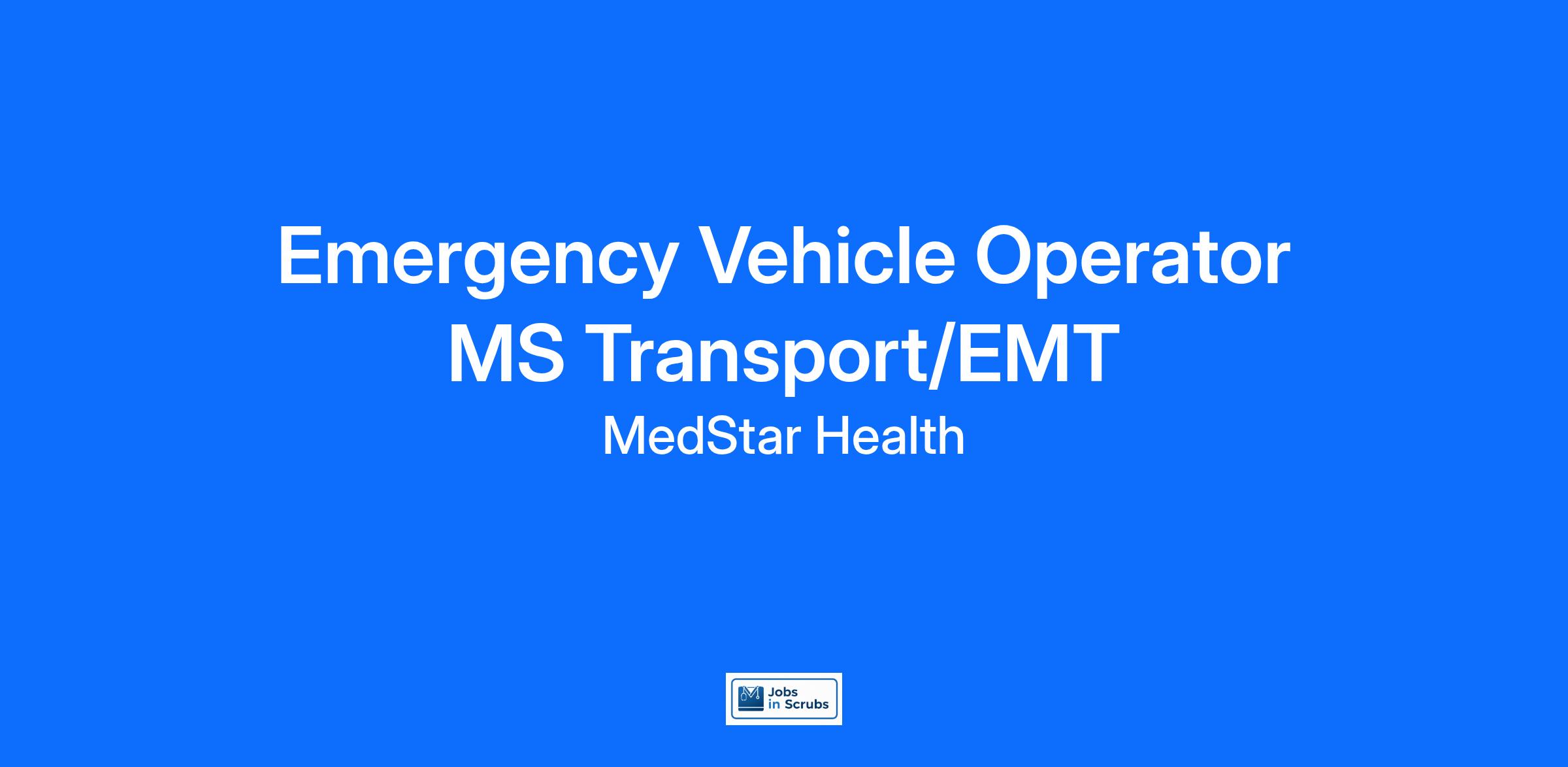 MedSTAR Transport within MedStar Health is actively seeking Emergency Vehicle Operators/ Emergency Medical Techs to provide basic patient medical care during interfacility ambulance transport. You will perform medical procedures under the supervision of a transport paramedic, transport nurse, or established protocol.