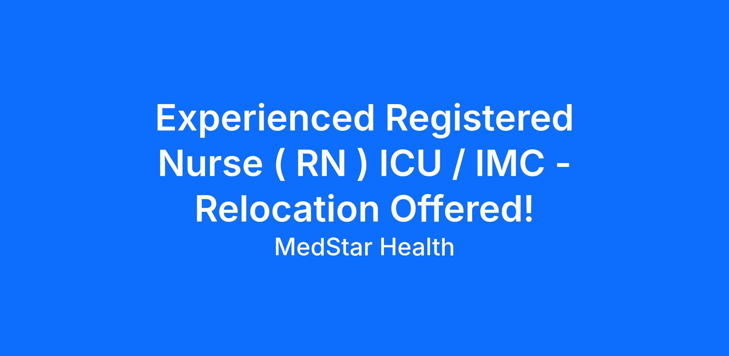 Experienced Registered Nurse ( RN ) ICU / IMC - Relocation Offered!