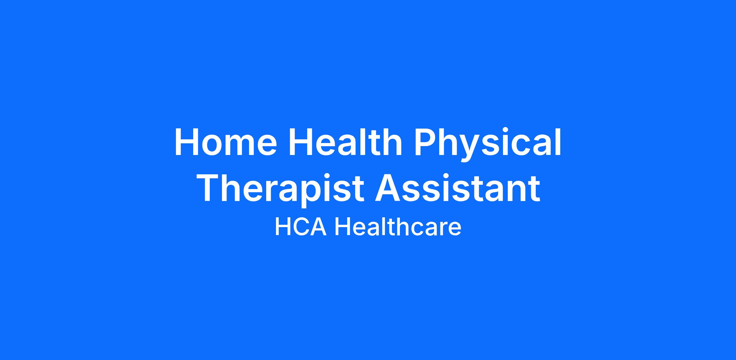 Do you have the career opportunities as a Home Health Physical Therapist Assistant you want with your current employer? We have an exciting opportunity for you to join HCA Midwest Healthcare at Home which is part of the nation's leading provider of healthcare services, HCA Healthcare.